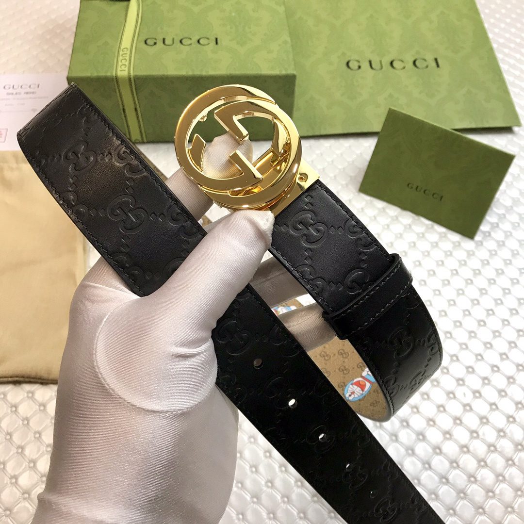 Gucci Belt Signature With Interlocking G Buckle Doreamon Black For Women, Women Belt