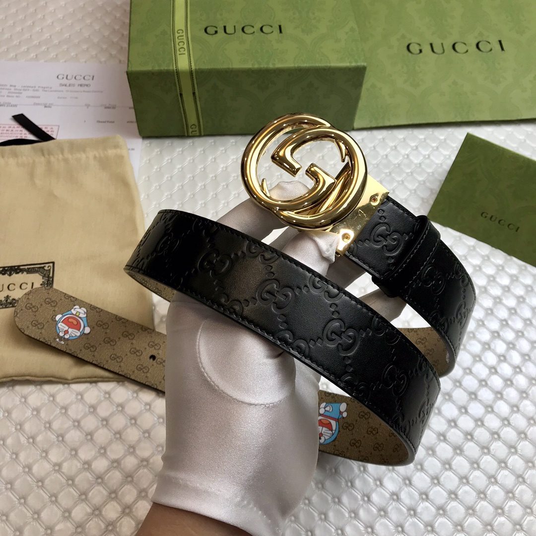 Gucci Belt Signature With Interlocking G Buckle Doreamon Black For Women, Women Belt