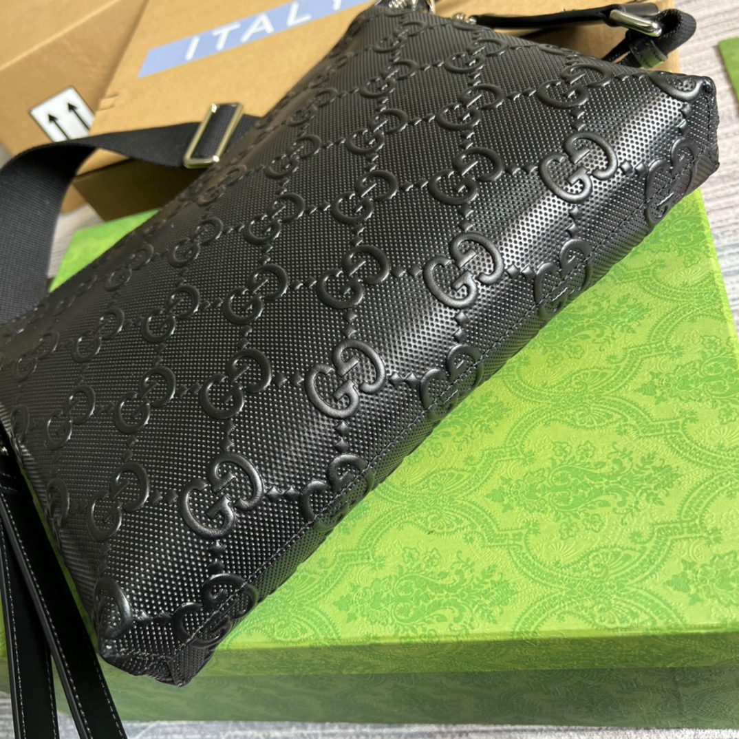 Gucci Embossed Medium Messenger Bag Black Gucci Embossed For Men 12in/31cm Gucci 696009 1W3CN 1000