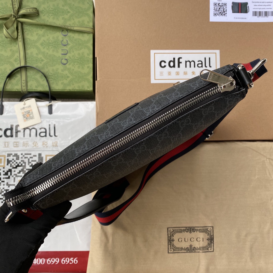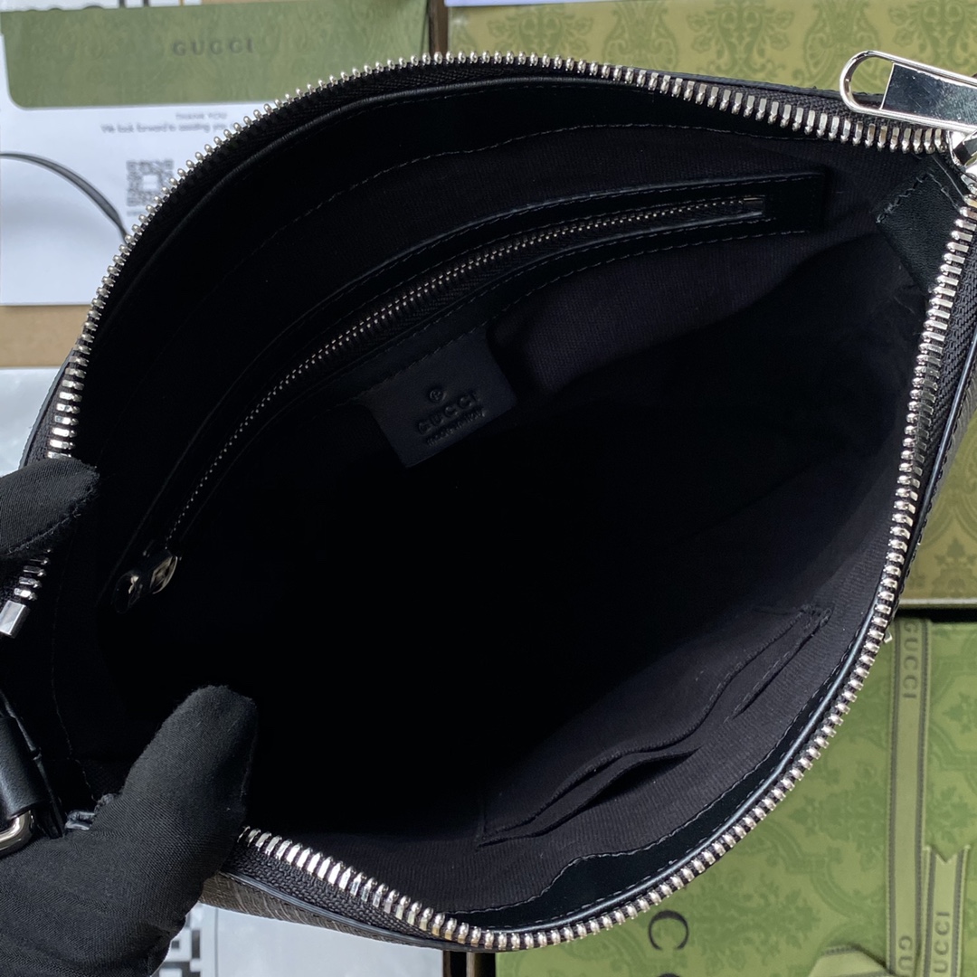 GUCCI Black Small Messenger Bag Black/Grey Gucci Supreme Canvas For Men 11in/28cm Gucci 474137 K5RLN 1095
