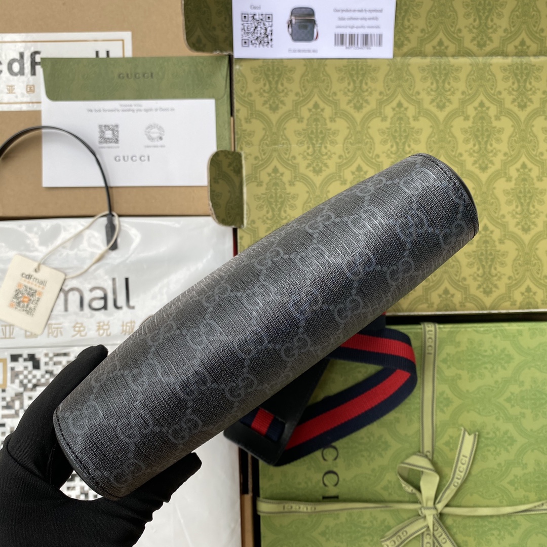 GUCCI Black Small Messenger Bag Black/Grey Gucci Supreme Canvas For Men 9in/23cm Gucci 523599 K5RLN 1095