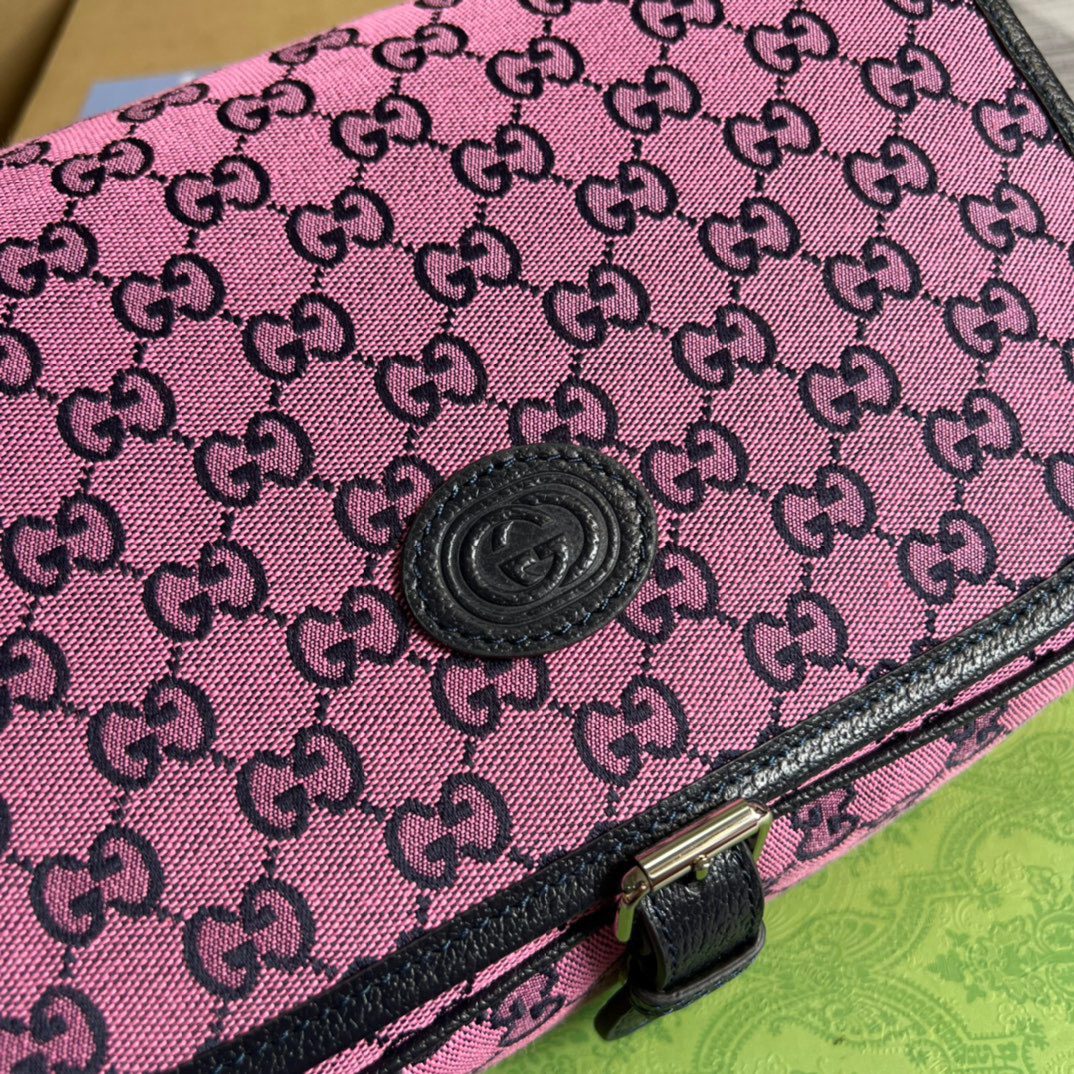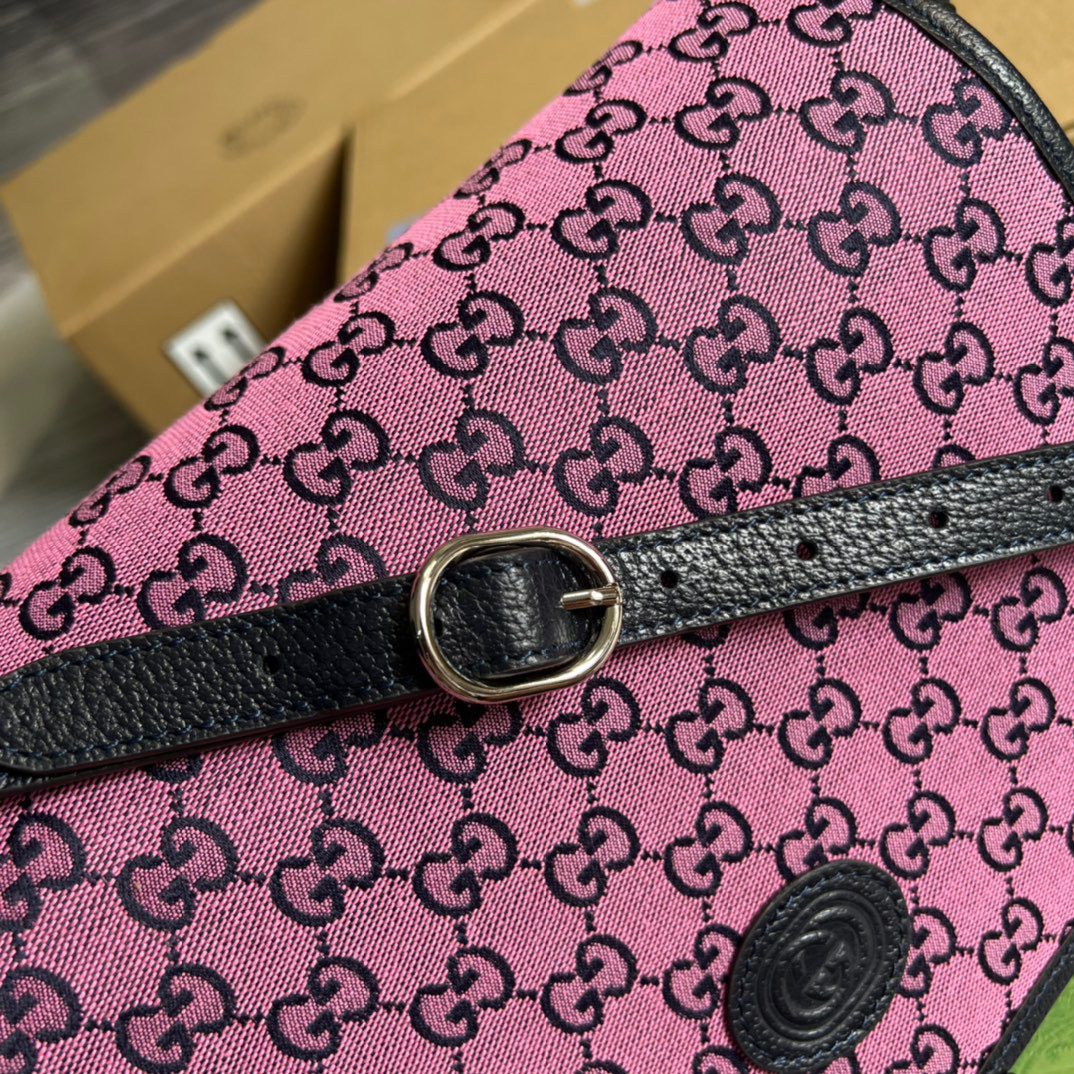 Embracing the new possibilities that lie within variations of the Gucci archives, various pieces throughout the collection provide a new lens through which to view the emblematic Gucci rhombi motif. Already an evolution of the House logo, it is once again reimagined in a series of bright colours-a theme that has become synonymous with the Creative Director’s vision. This Gucci Multicolour children’s messenger bag is presented in pink and blue canvas.;Pink and blue Gucci canvas; Interlocking G patch;Adjustable should strap with 15.7″ drop;Buckle closure;
