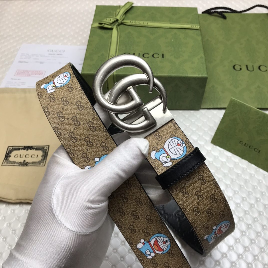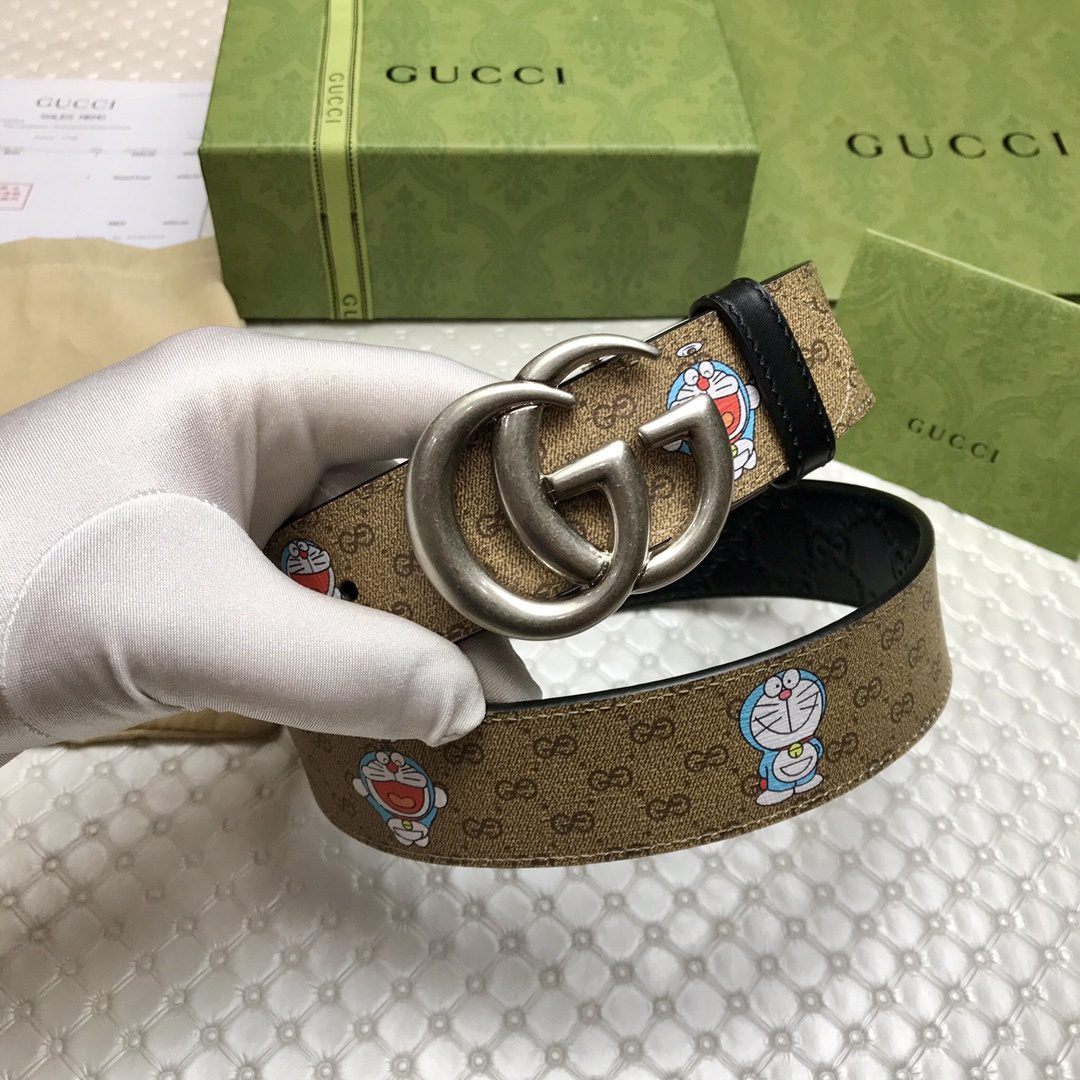 • GUCCI Supreme Belt With Double G Buckle Doreamon Beige/Ebony Gucci Supreme Canvas For Women, Women Belt