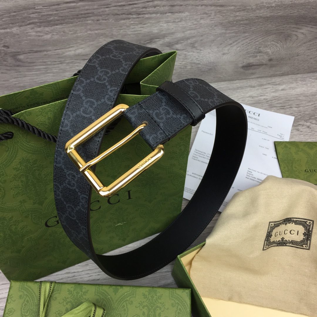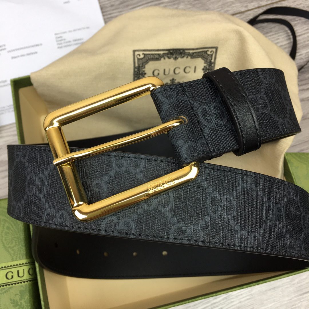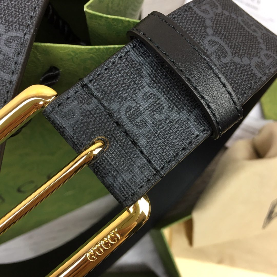GUCCI Supreme Belt With Square Buckle Black/Grey Gucci Supreme Canvas For Women, Women Belt