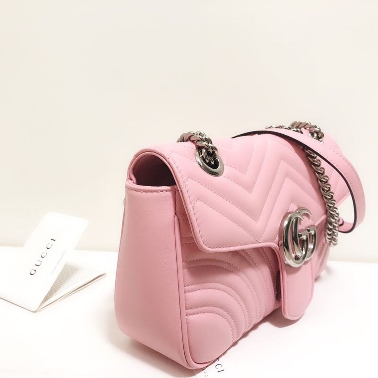 • Gucci Marmont Small Matelassé Shoulder Bag Dusty Pink Matelassé Chevron For Women 10in/26cm Gucci ‎443497 DTDIT 5729