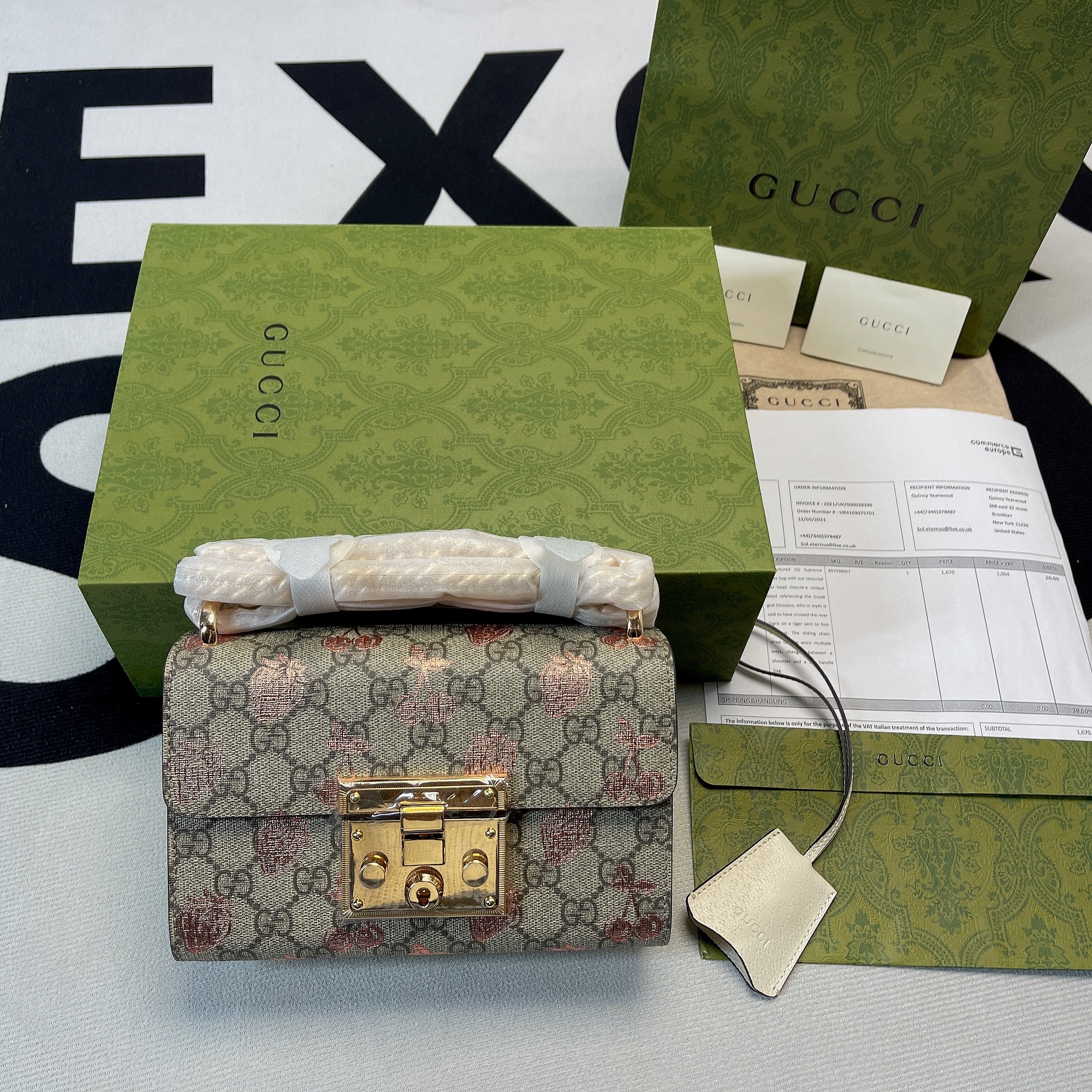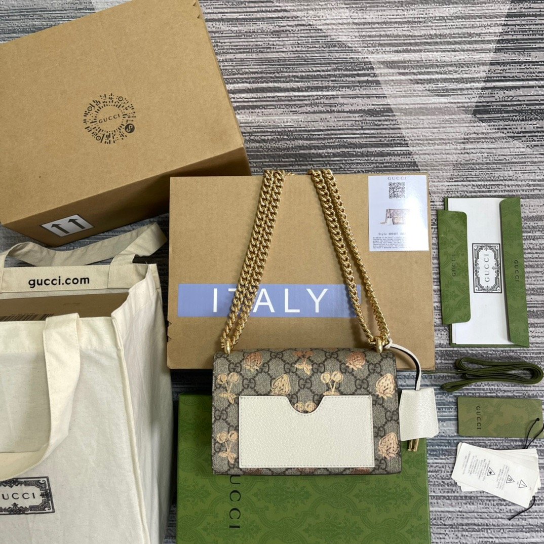 Gucci Padlock Small Gucci Strawberry Shoulder Bag Beige For Women, Women’s Bags 7.9in/20cm GG