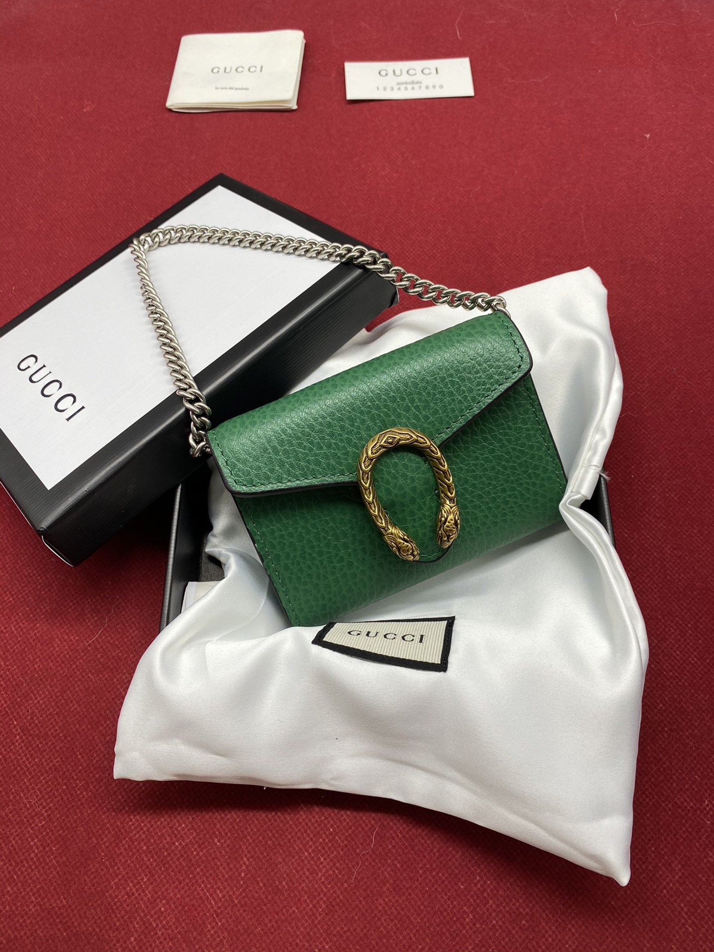 Gucci Super Mini Dionysus Chain Bag Emerald Green Metal-Free Tanned For Women 4in/11cm GG
