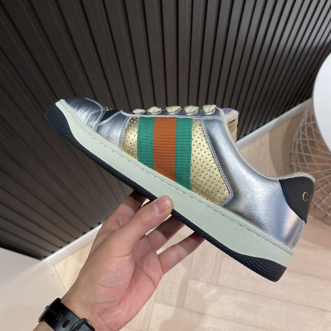 Gucci Women’s Screener Low Top Sneakers Silver Gold For Women 627833 1TR20 8162