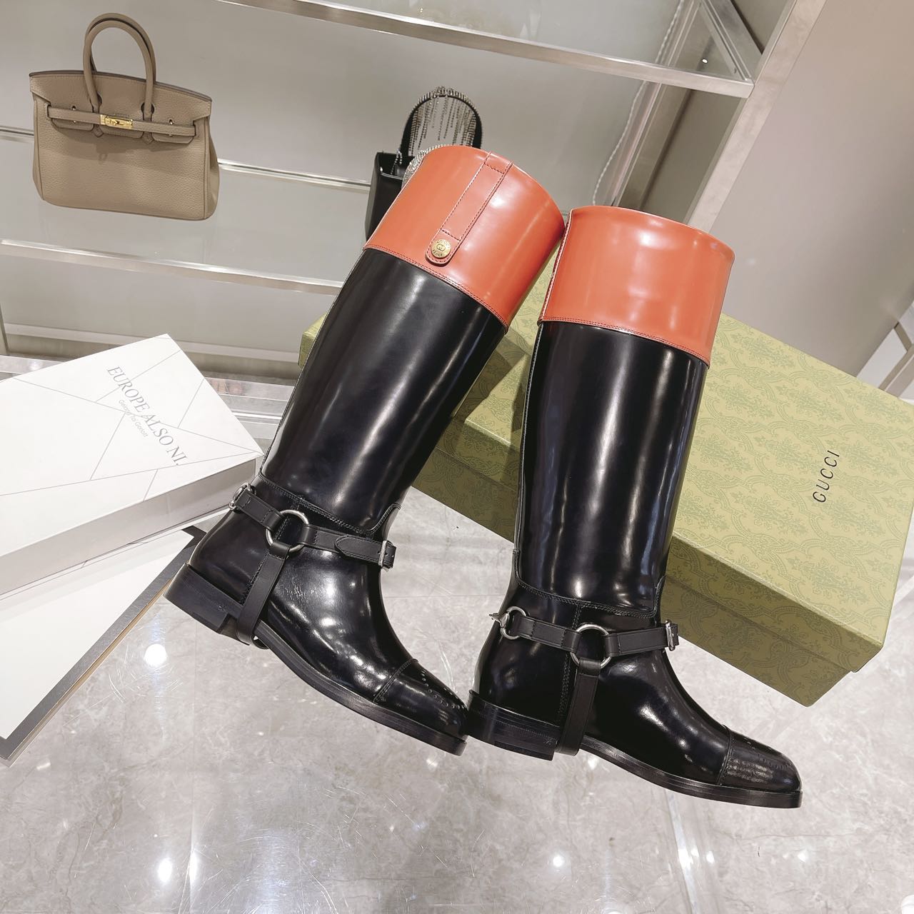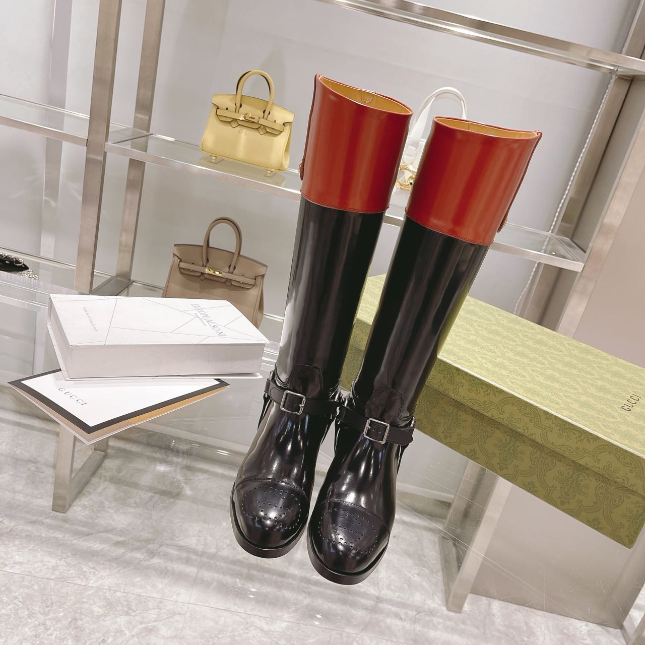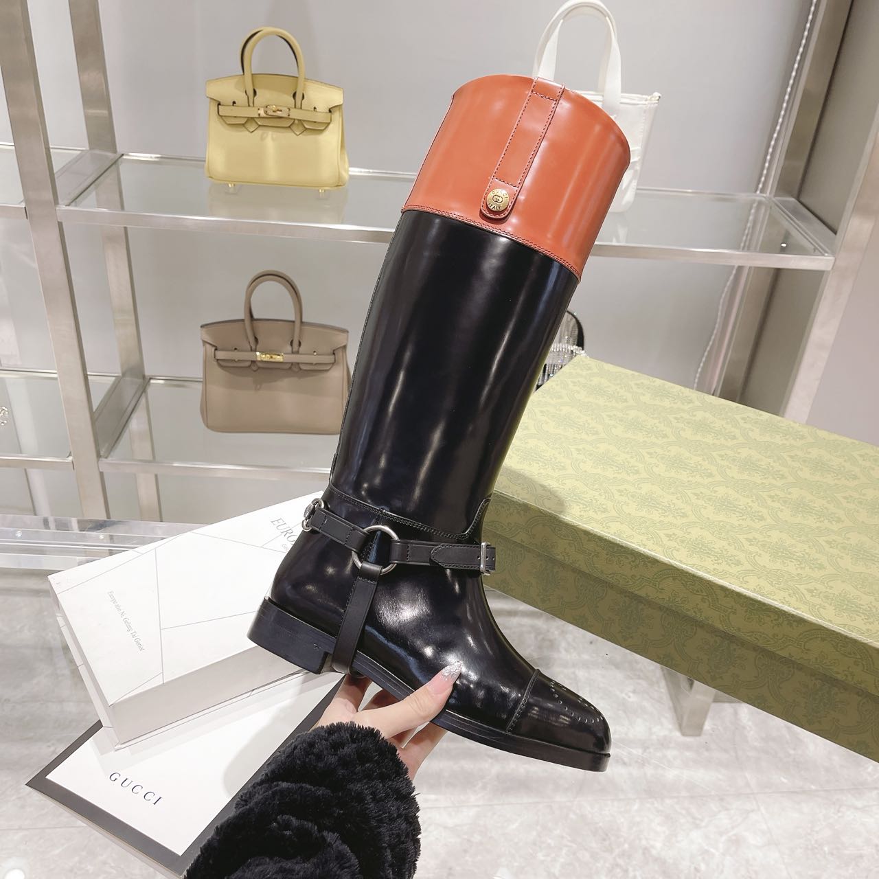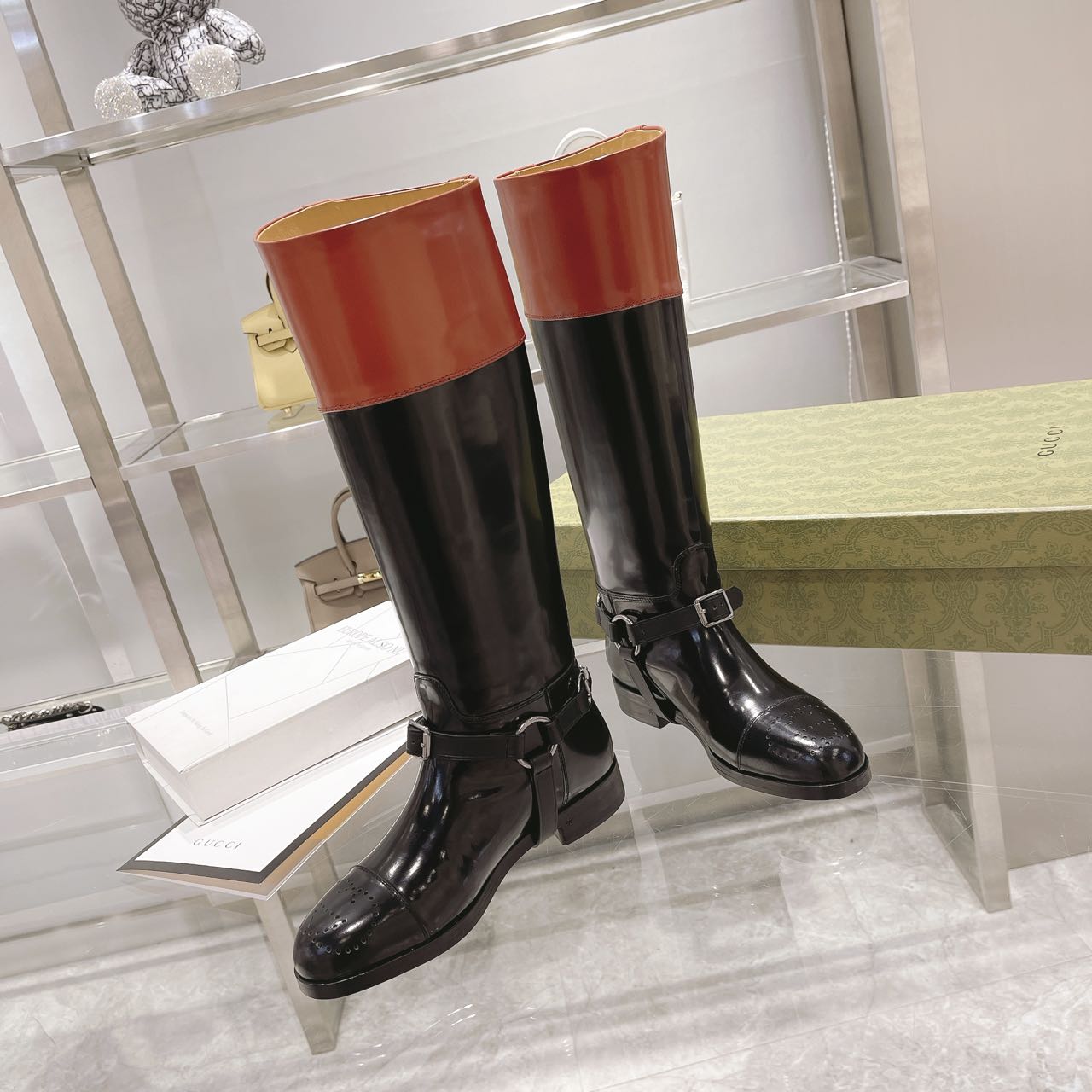 Gucci Knee-High Boot With Harness Black For Women Gucci 674670 DS8J0 1079