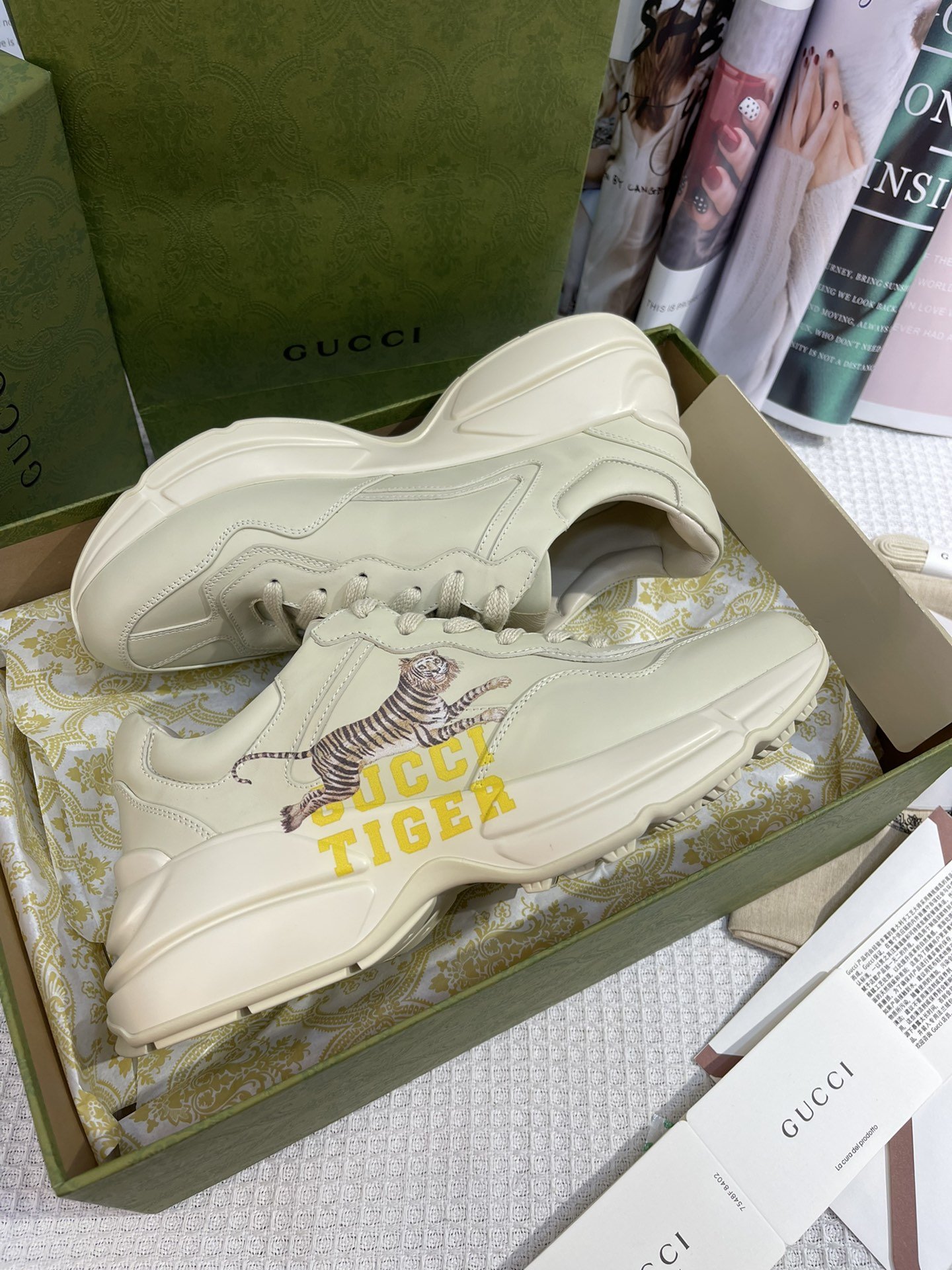 Gucci Lunar New Year Women’s Rhyton Sneaker With Tiger Beige For Women Gucci 687626 DRW00 9522