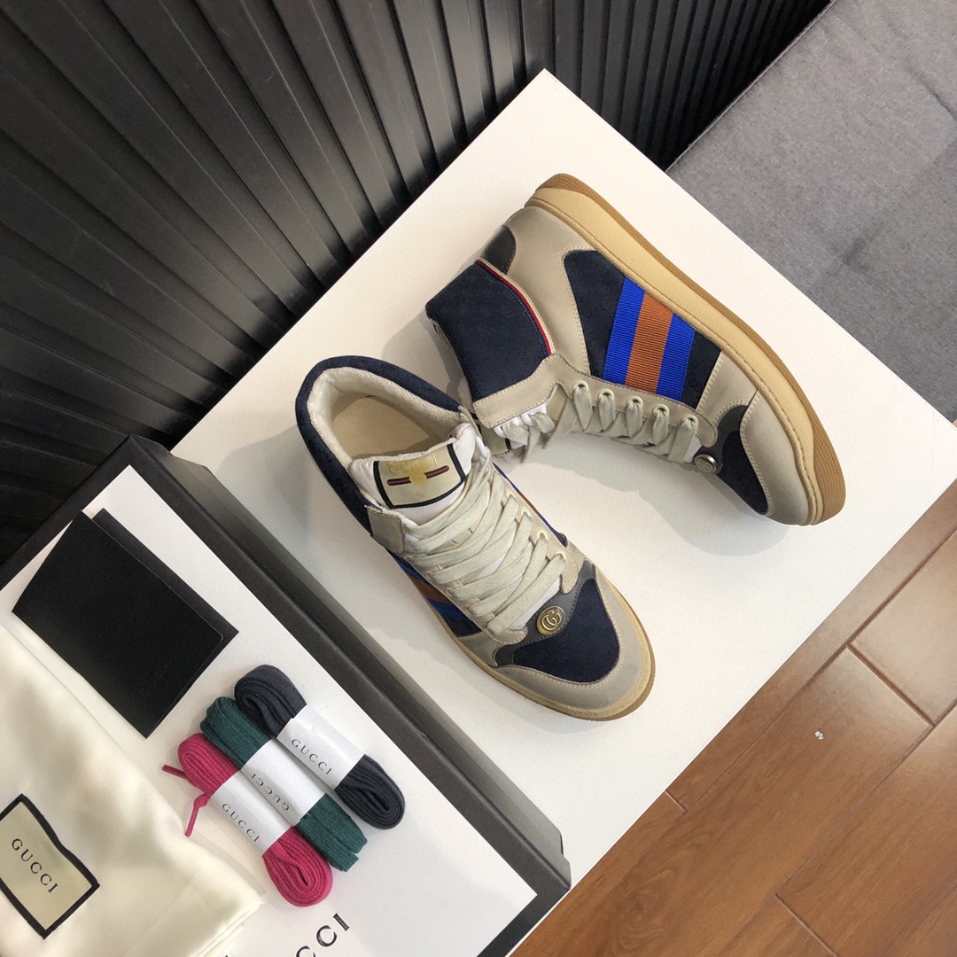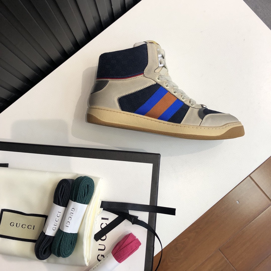 Gucci Women’s Gucci Screener Distressed High Top Off-White Blue For Women 563730