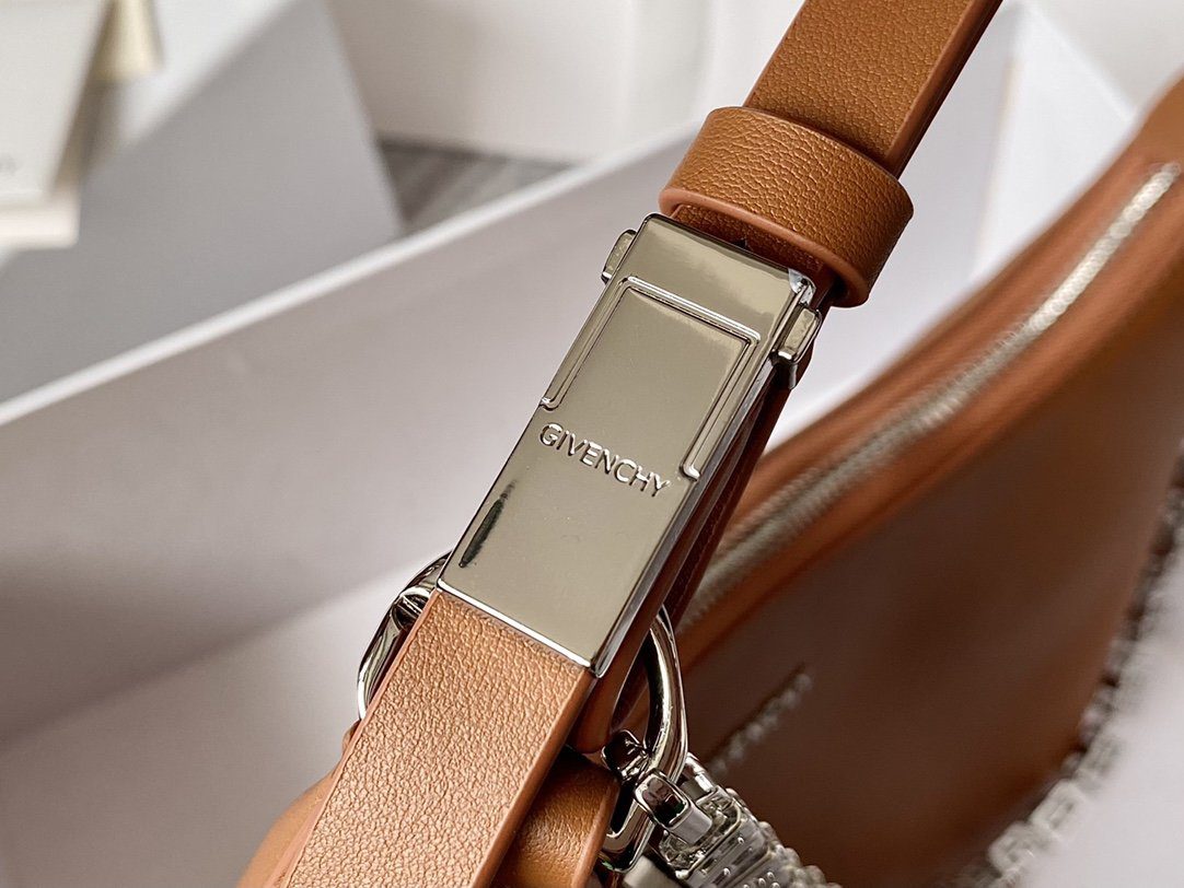 Adjustable and removable handle with GVNCH-engraved metal buckle.