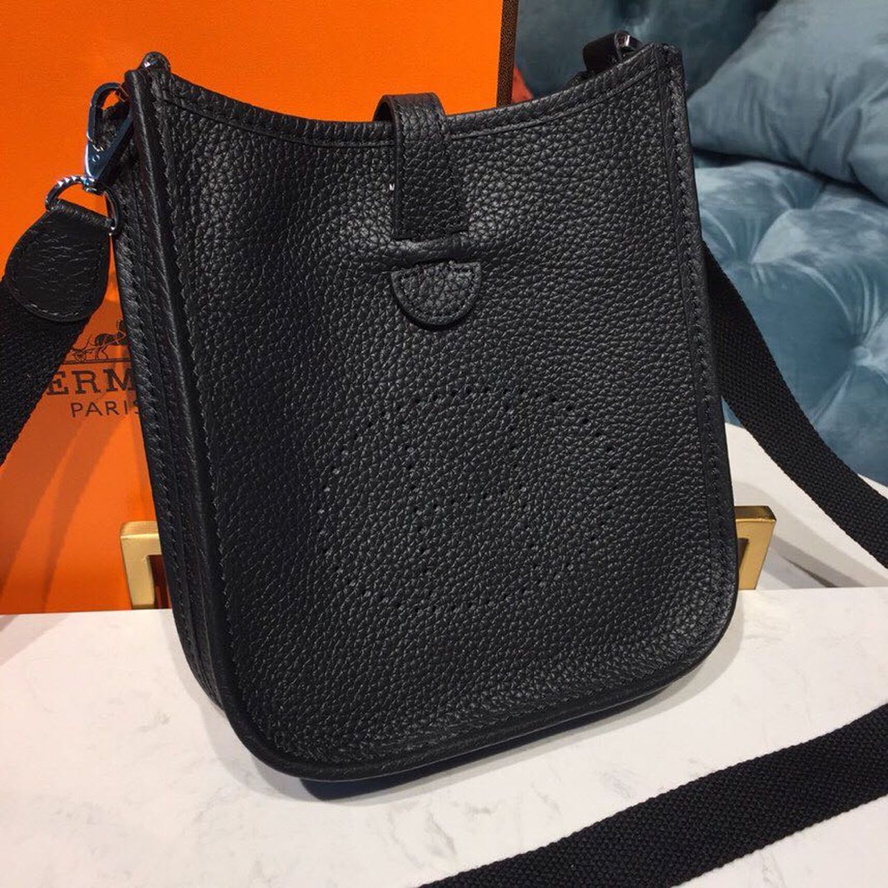Hermes Evelyne II TPM Bag Black For Women Silver Toned Hardware 7.9in/20cm