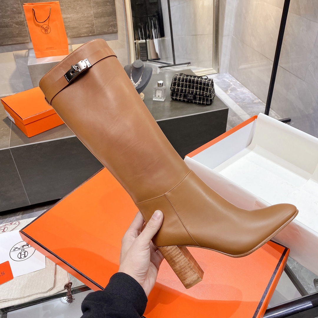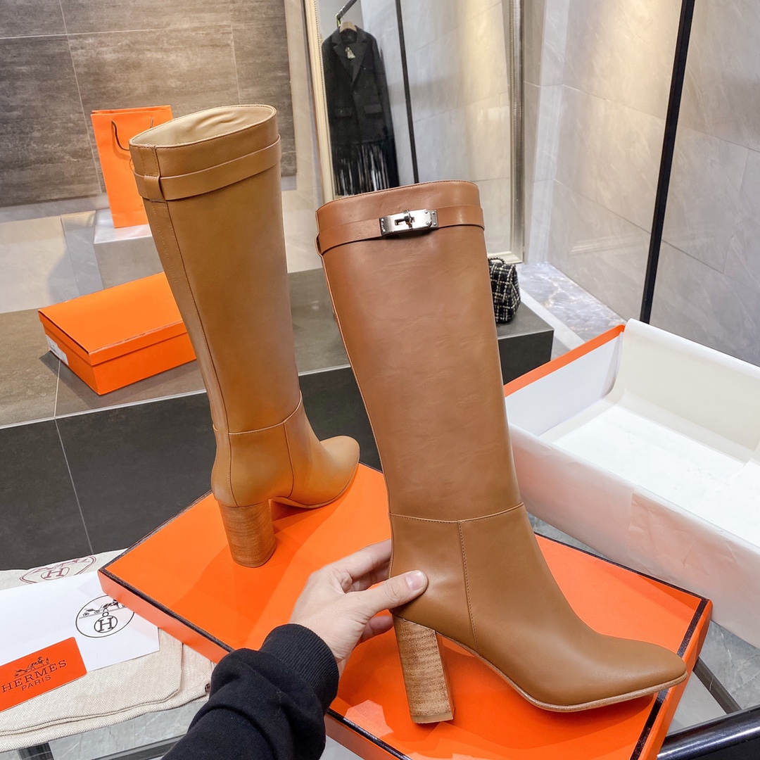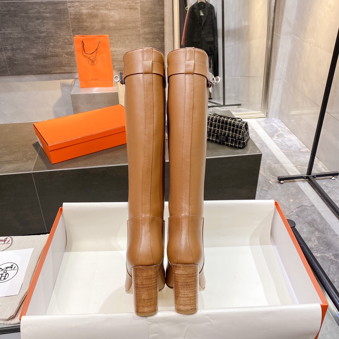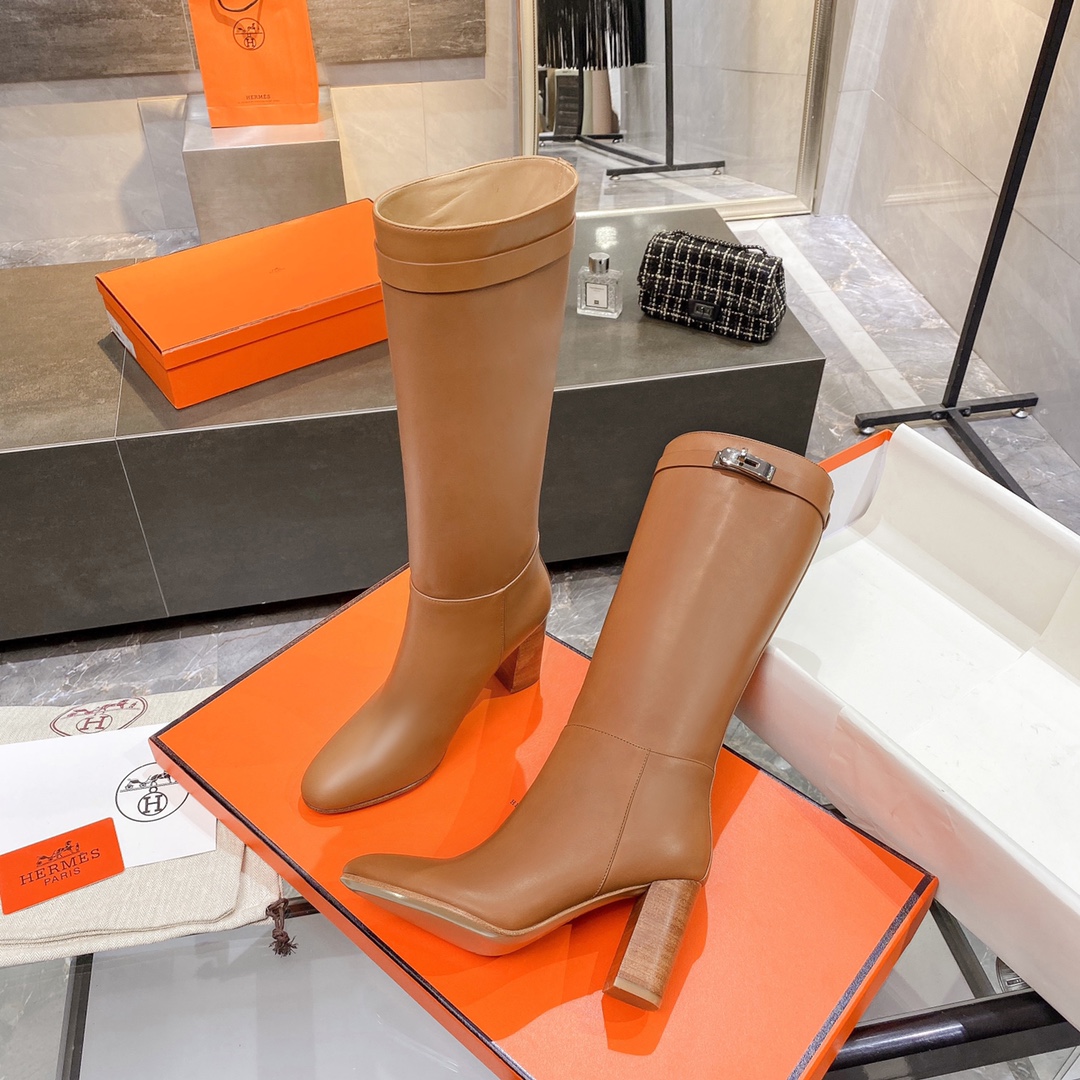 Hermes High Heel Boots Brown For Women 3.54in/9cm
