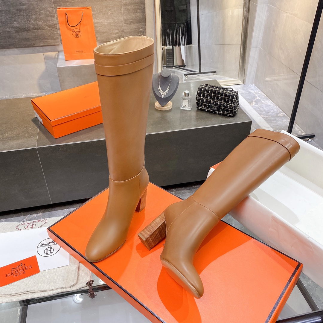 • Hermes High Heel Boots Brown For Women 3.54in/9cm