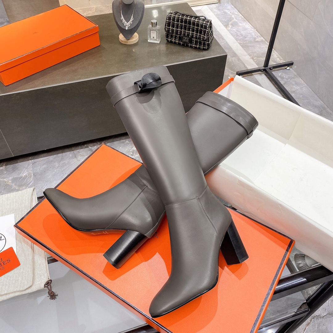 Hermes High Heel Boots Gray For Women 3.54in/9cm