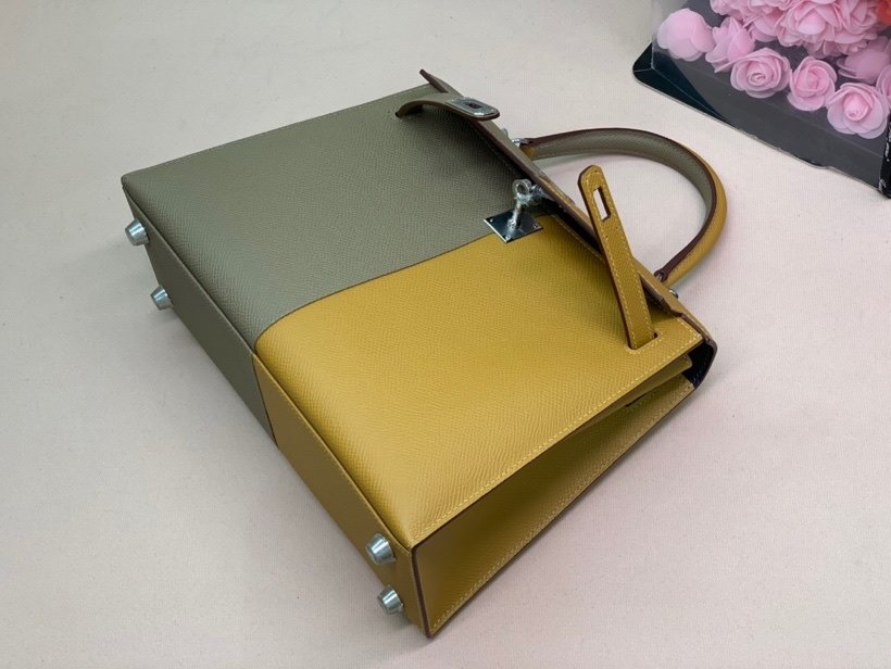 Hermes Kelly 28 Sellier Epsom Bag Grey/Yellow For Women, Women’s Handbags, Shoulder Bags 11in/28cm