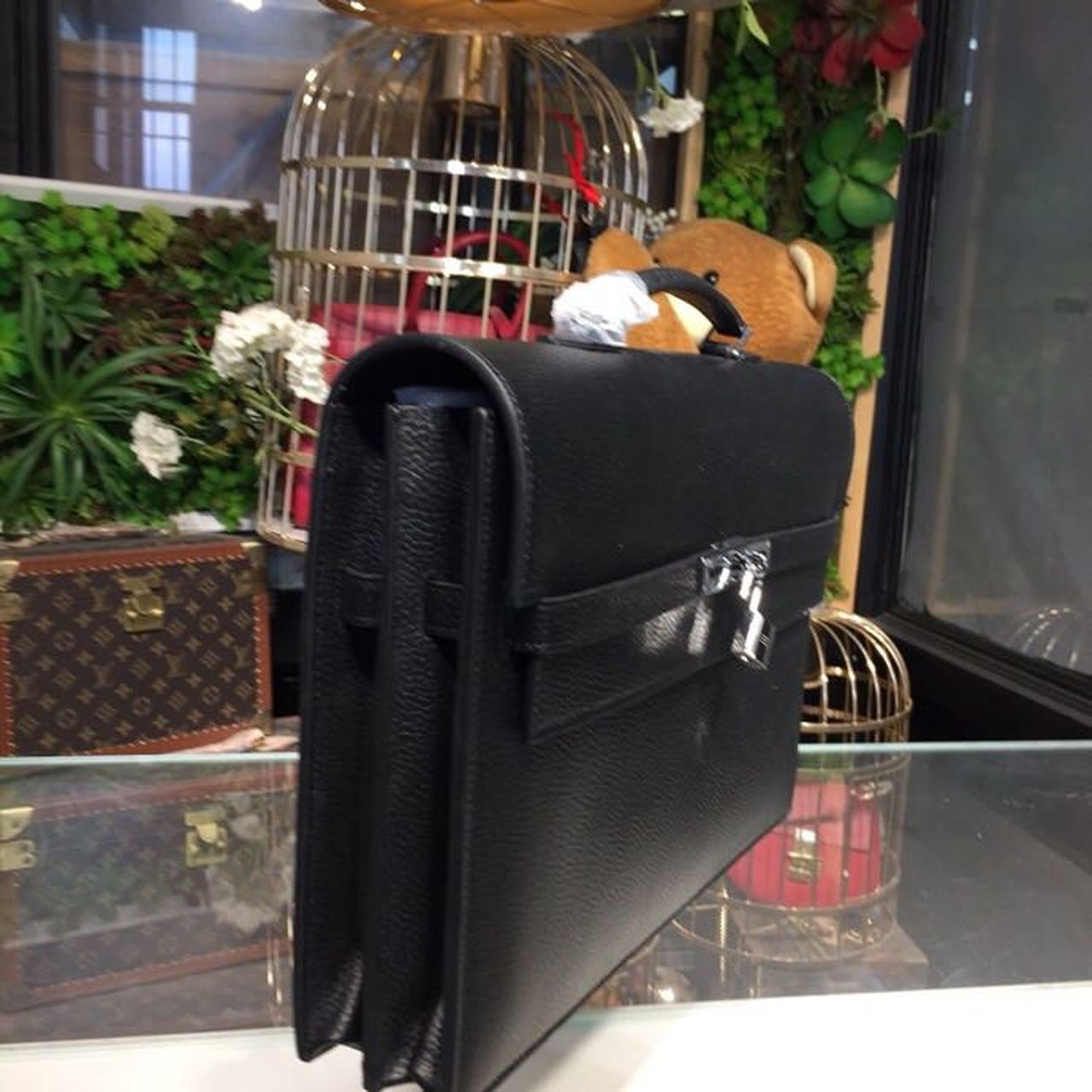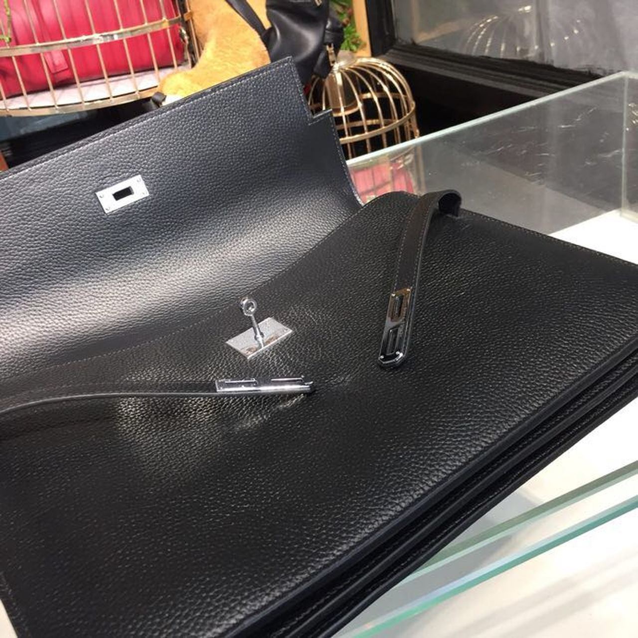 Hermes Kelly Depeche Black For Women Palladium Hardware 15in/38cm