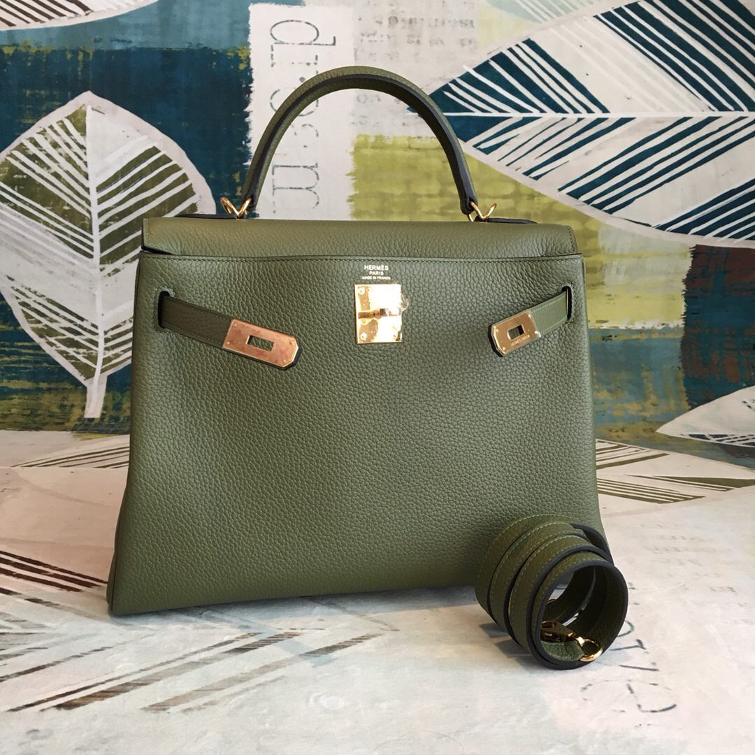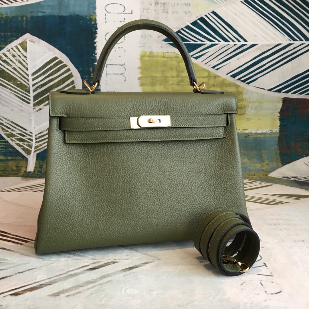 Hermes Kelly Green Bag In Epsom With Gold Toned Hardware Bag For Women 7.5in/19cm