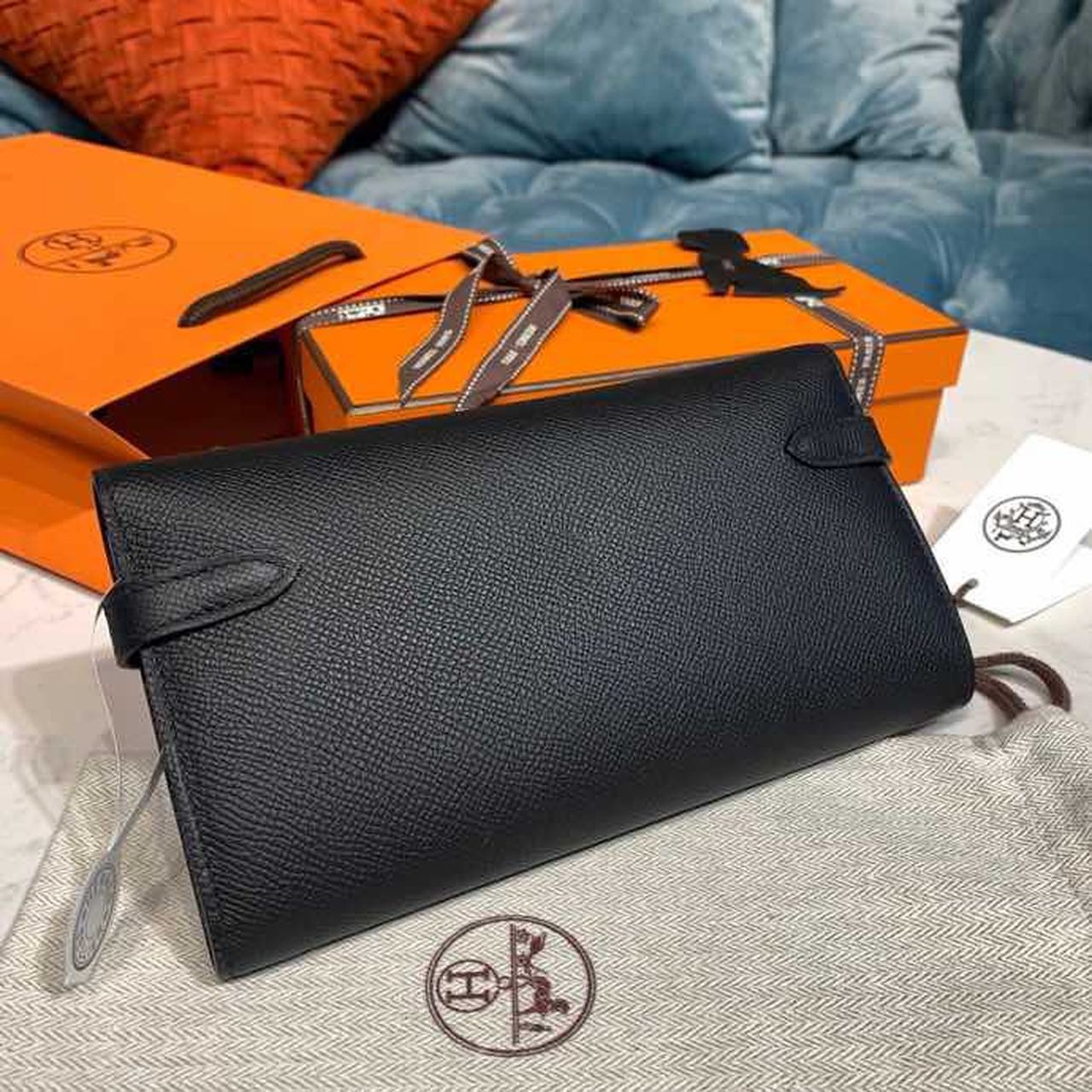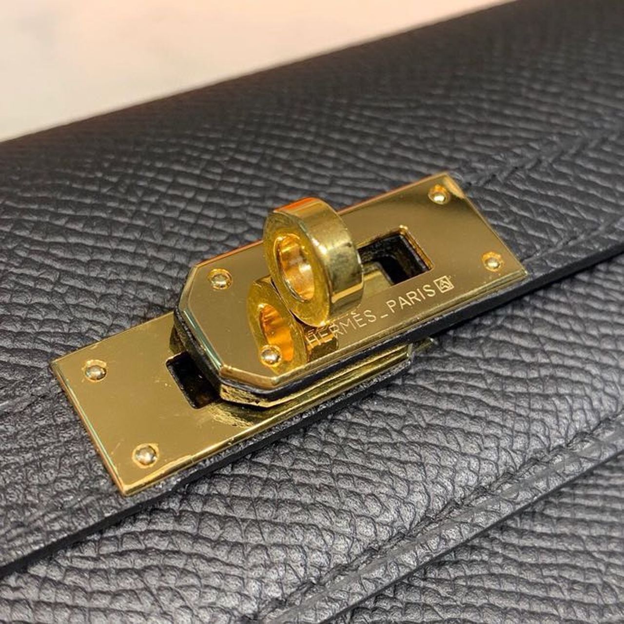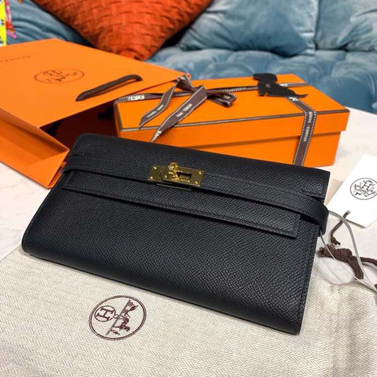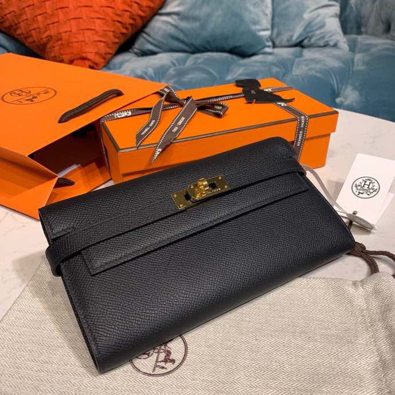 Hermes Kelly Wallet To Go Woc Black With Gold Toned Hardware Bag For Women 8.2in/21cm