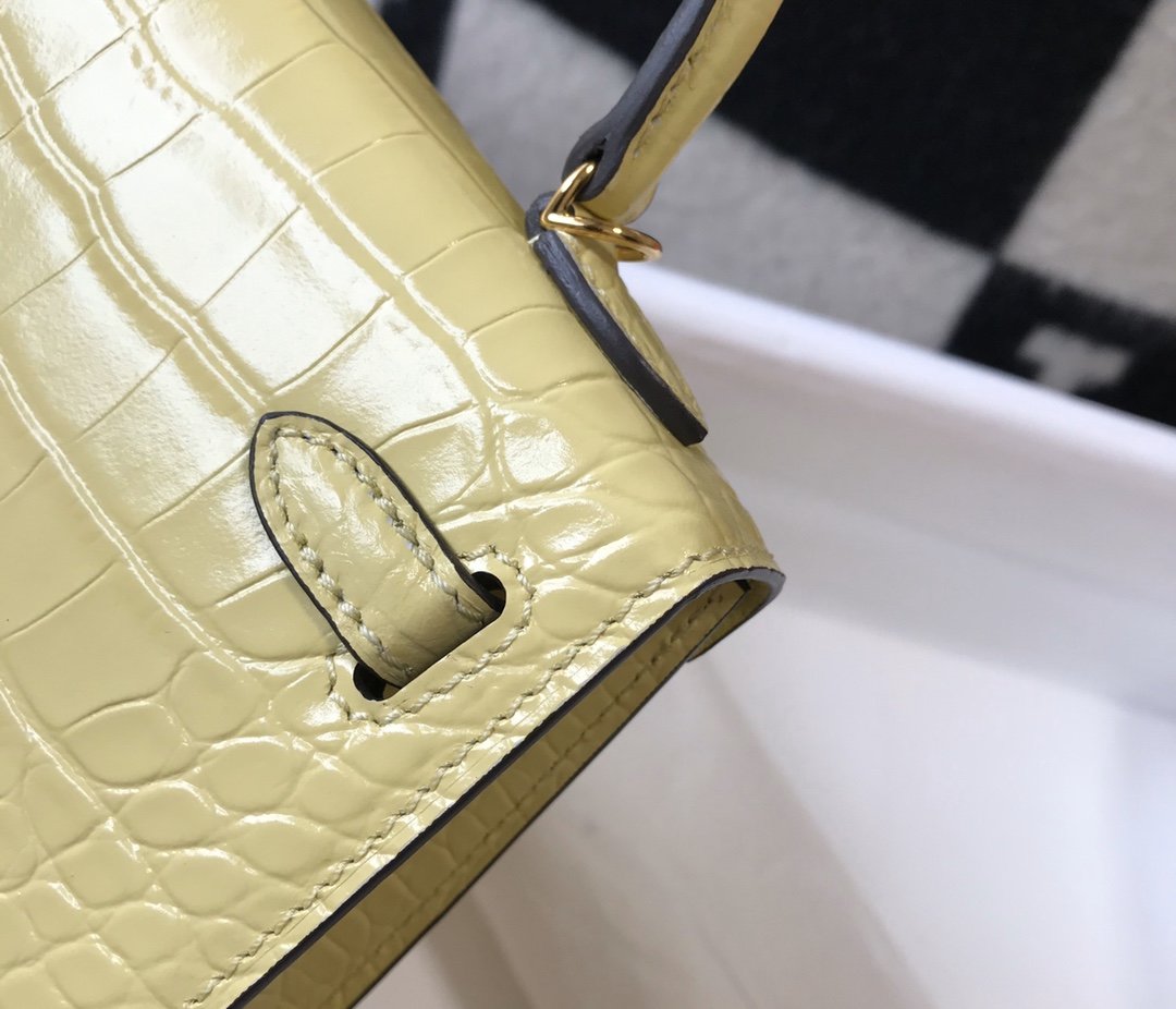 Hermes Mini Kelly 19 Embossed Patent Matte Yellow Bag With Gold-Toned Harware For Women, Women’s Handbags, Shoulder Bags 7.5in/19cm