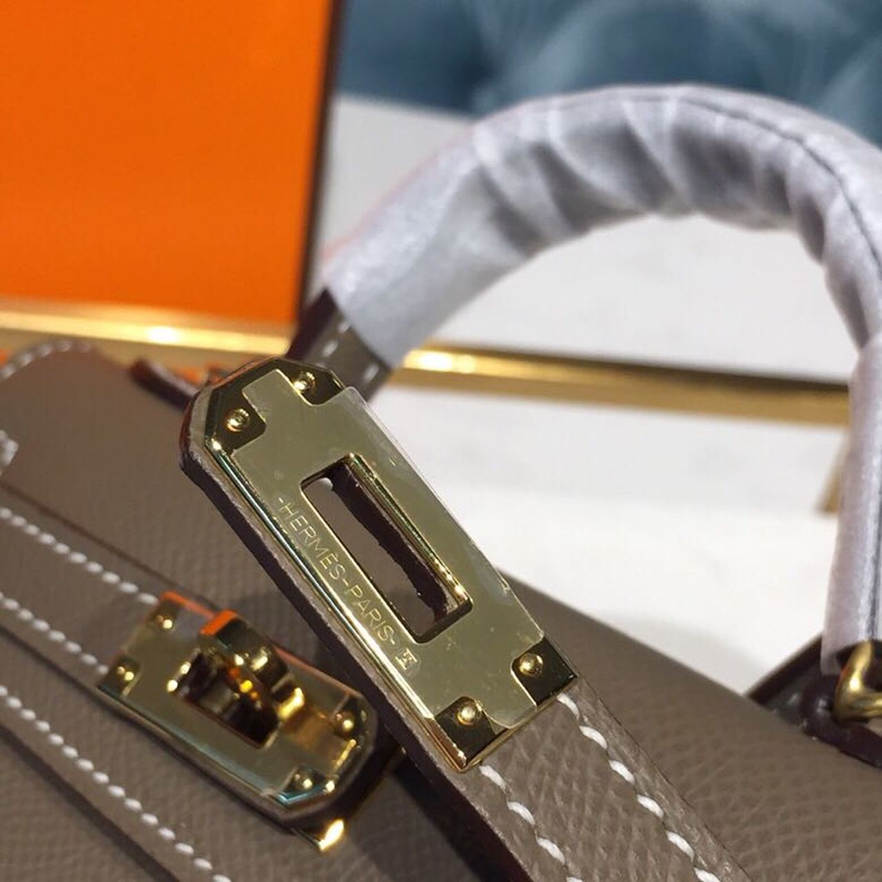 Hermes Mini Kelly 20 Sellier Epsom Etoupe Bag For Women, Women’s Handbags, Shoulder Bags 7.5in/20cm