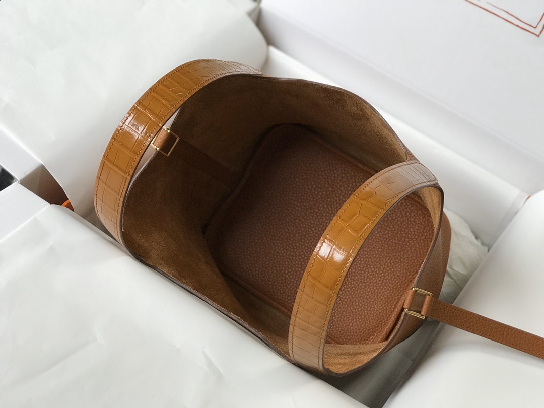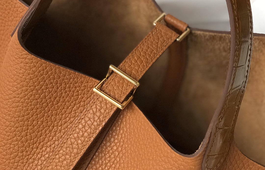 This timeless and minimalist bindle is inspired by horse feeders and is equipped with a discreet padlock. It takes its name from an old French term for the measure of oats given to a horse. The Picotin is the perfect equestrian escort, available in unlined that showcases the material.