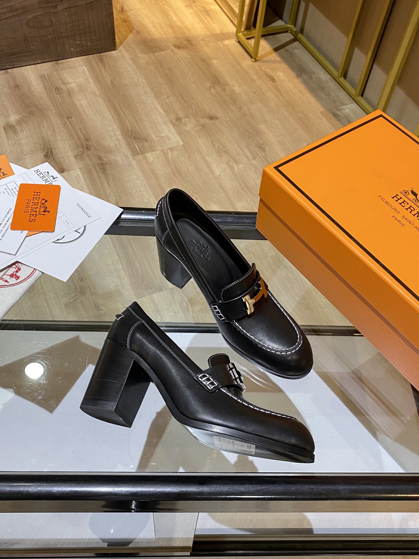 Hermes Shoes Heel Black For Women 2.8in/7cm