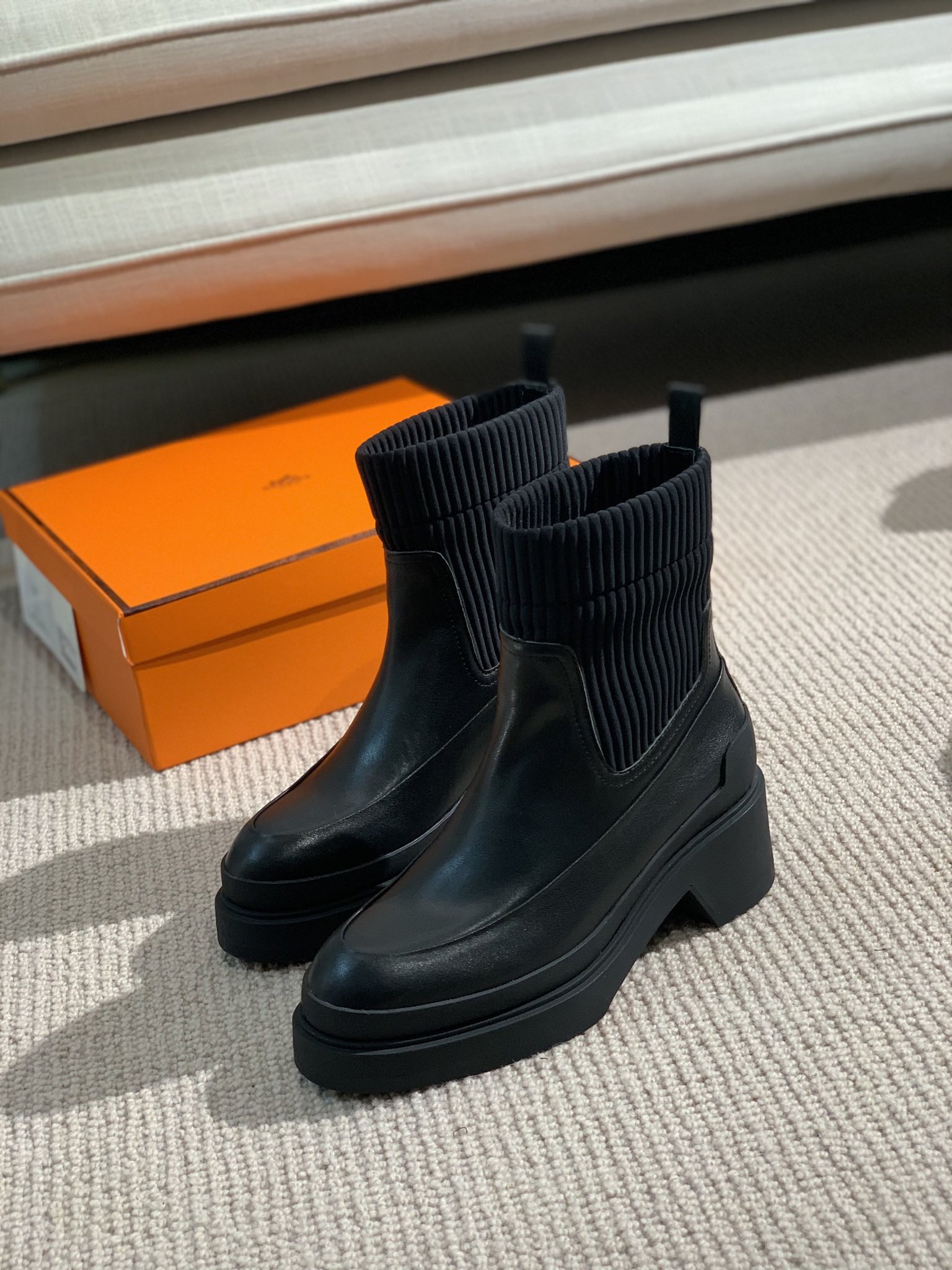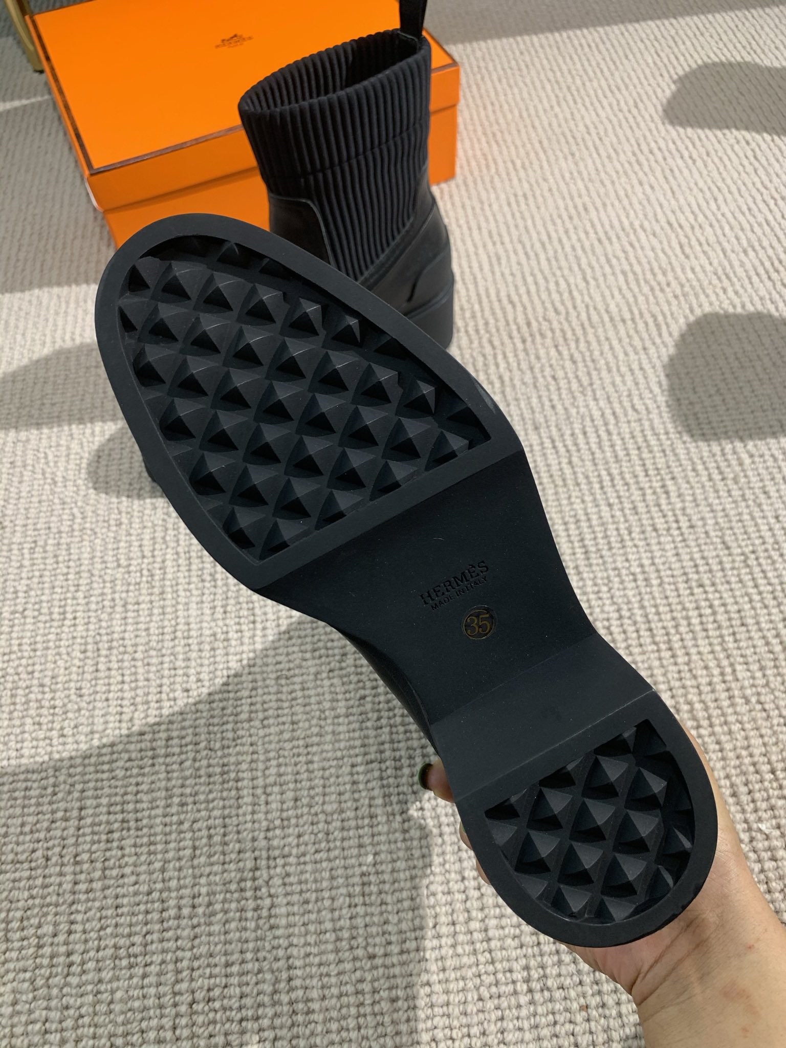 • Hermes Side Gore Boots Black For Women 1.6in/4cm