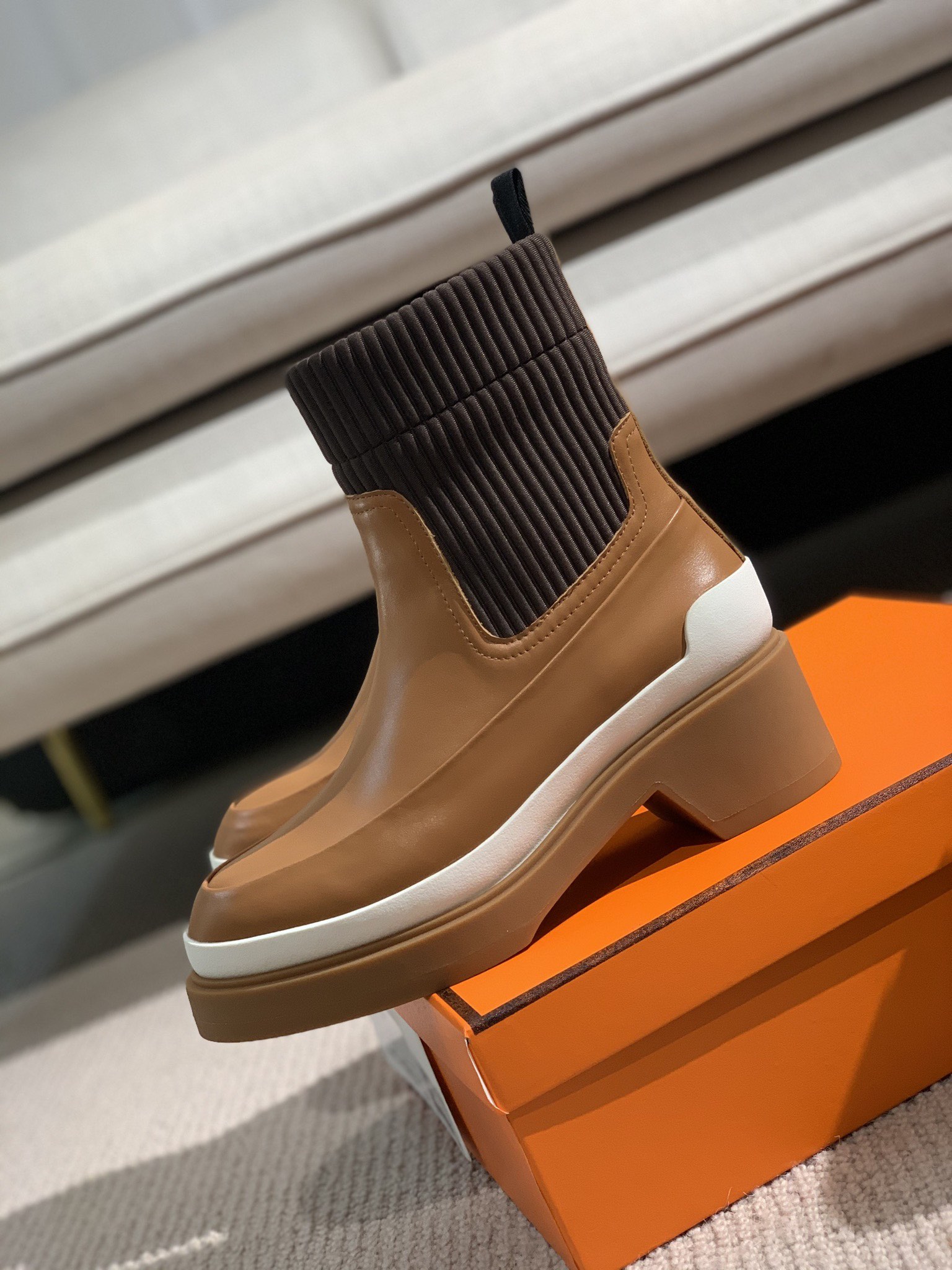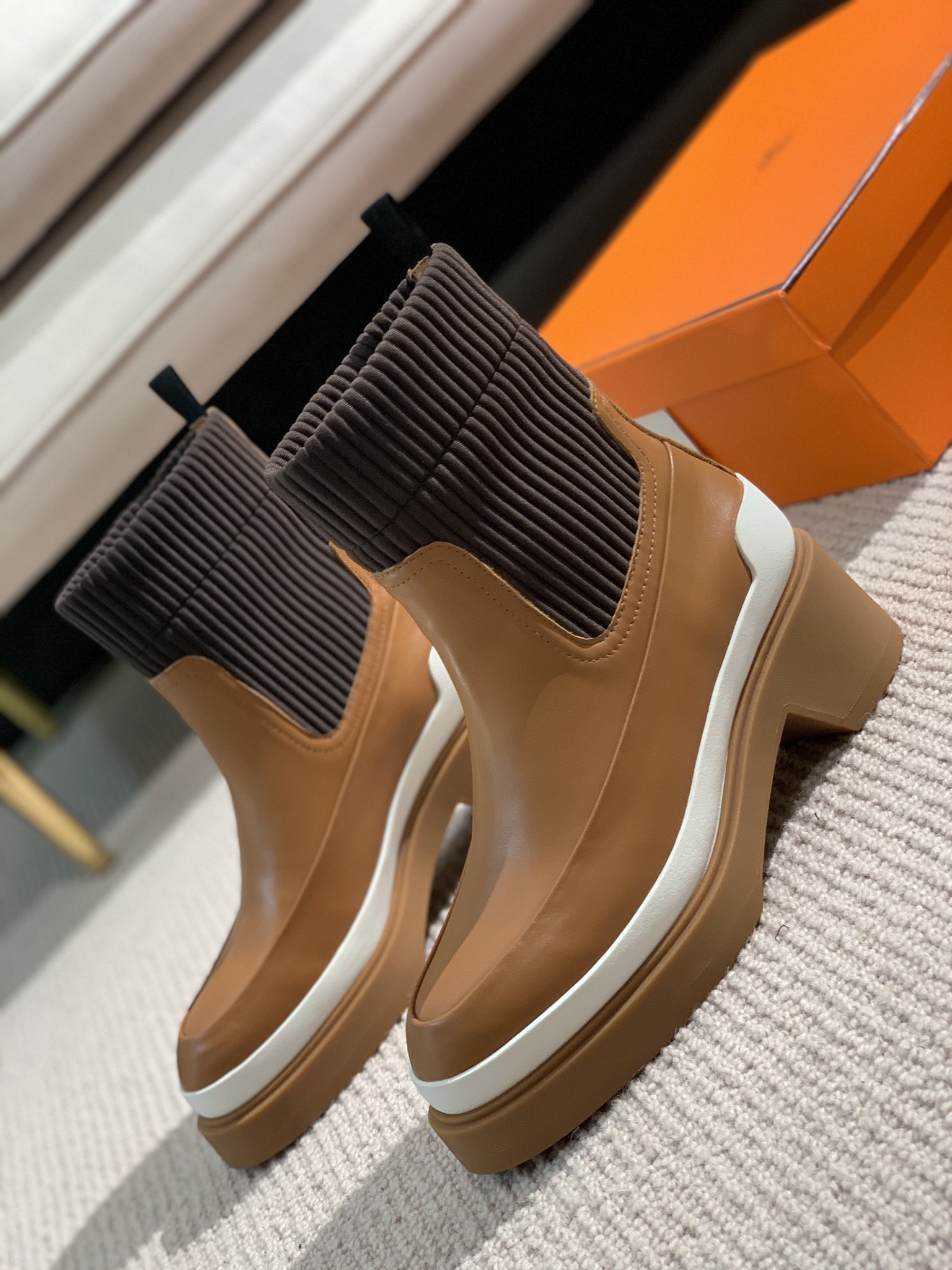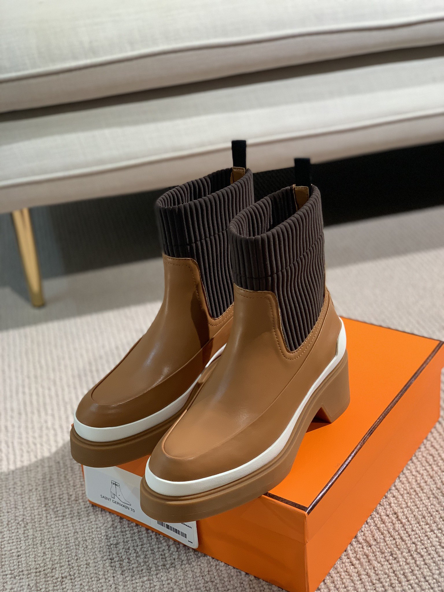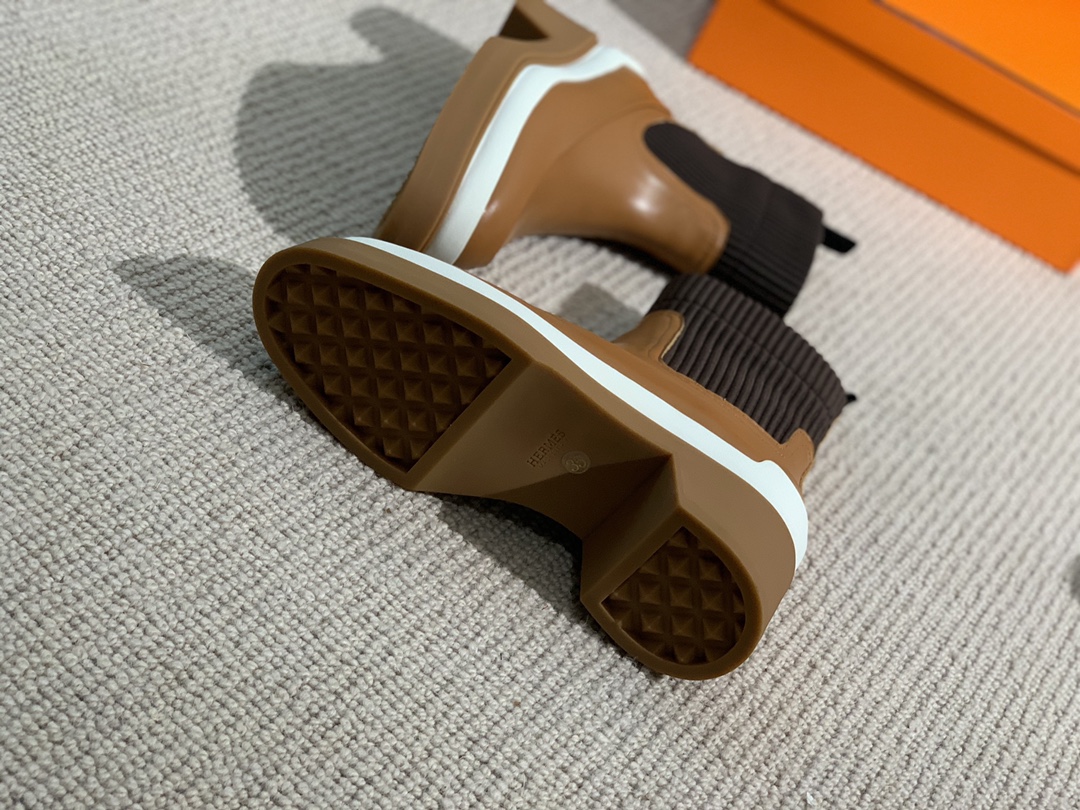 Hermes Side Gore Boots Brown For Women 1.6in/4cm