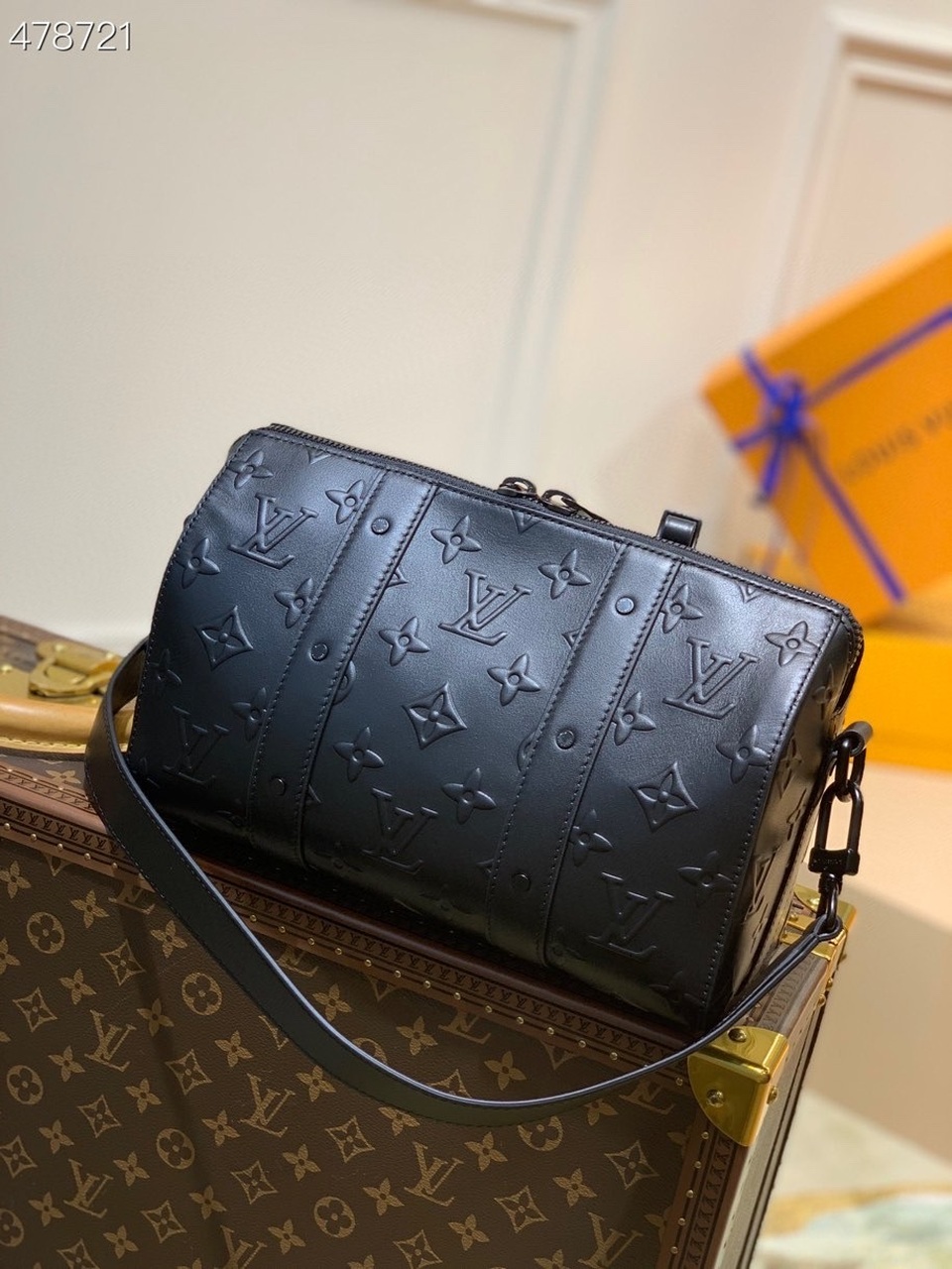 The handsome, compact Keepall XS is a scaled-down reinterpretation of L.V’s classic Keepall bag. This Monogram Seal version features top-quality elegant black, debossed with the iconic Monogram pattern for a rich tactile effect. With its double handle and adjustable strap, it’s a smart, practical accessory that makes a striking signature statement.
