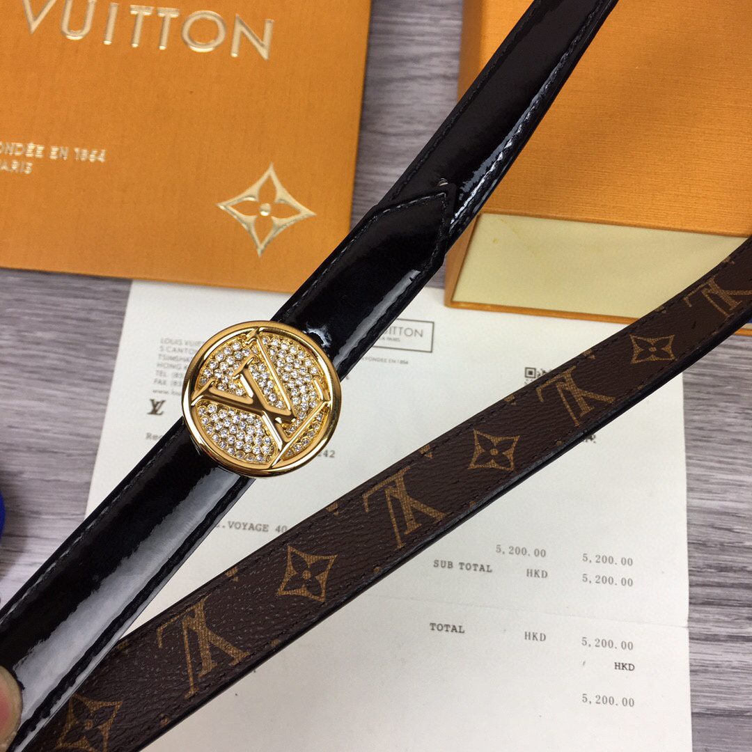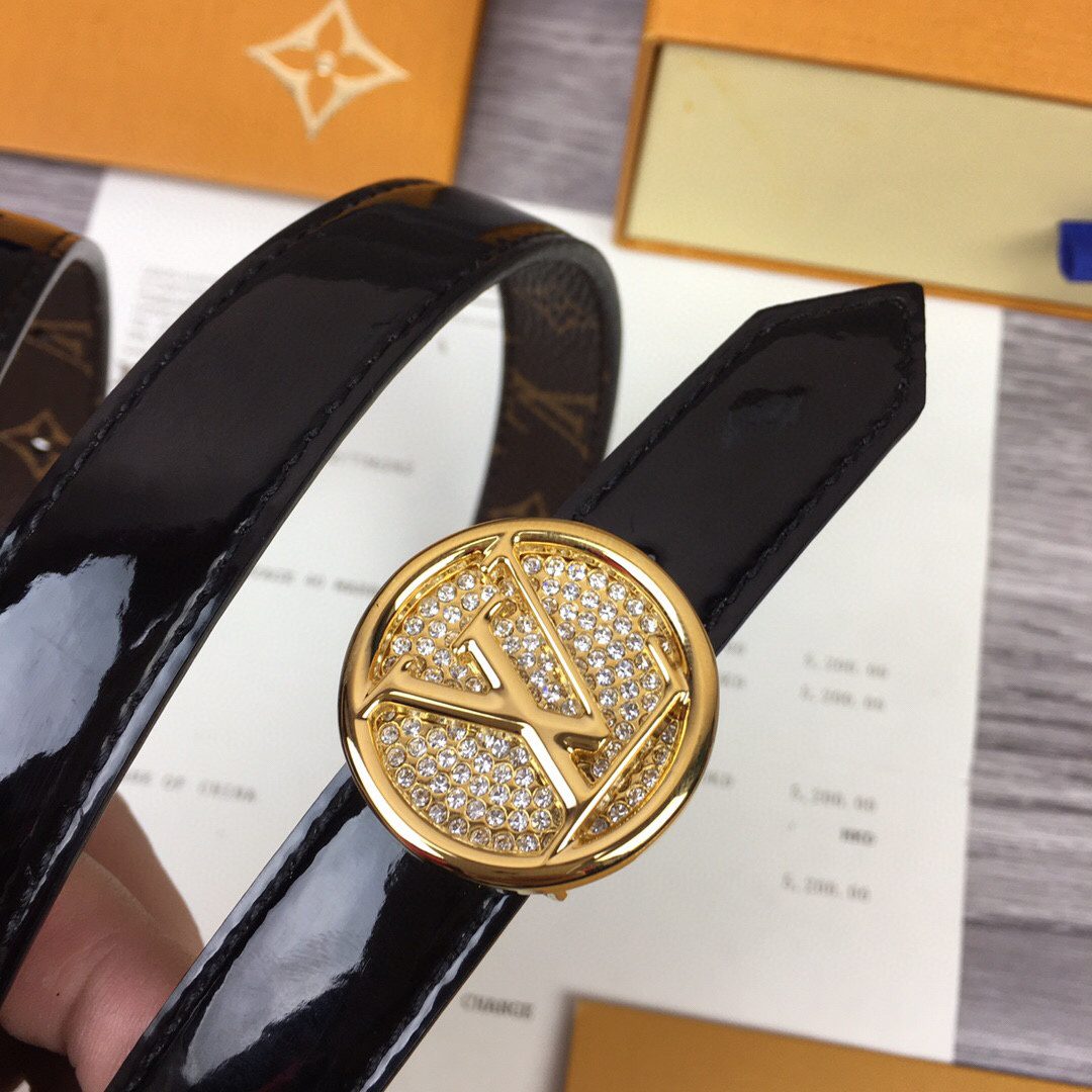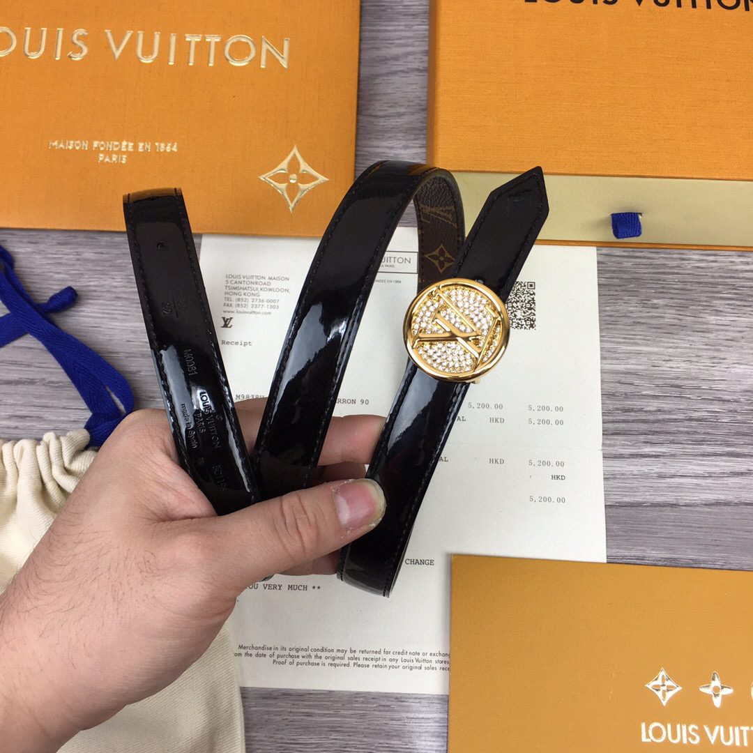 • Louis Vuitton LV Circle Reversible Belt Monogram Canvas Gold Toned Hardware LV Women Belt