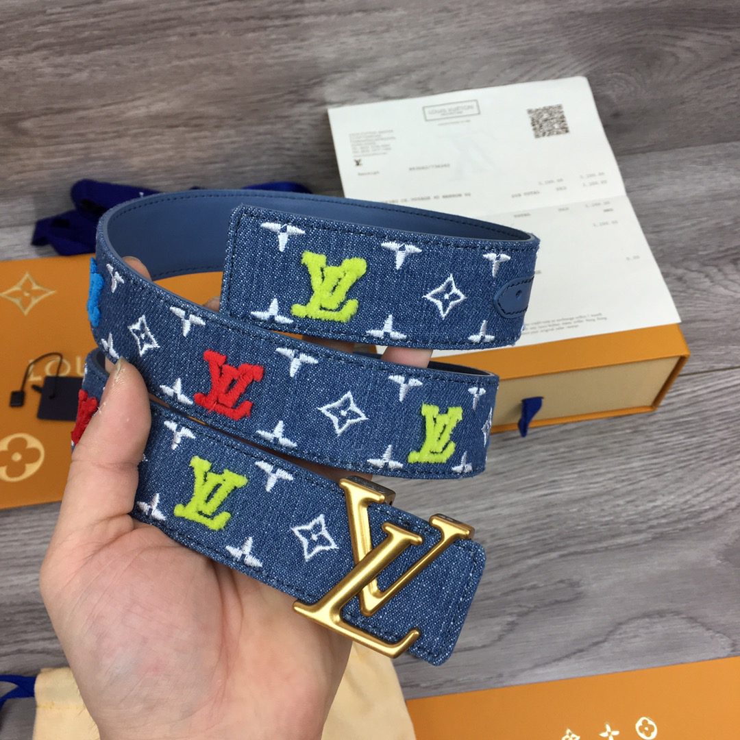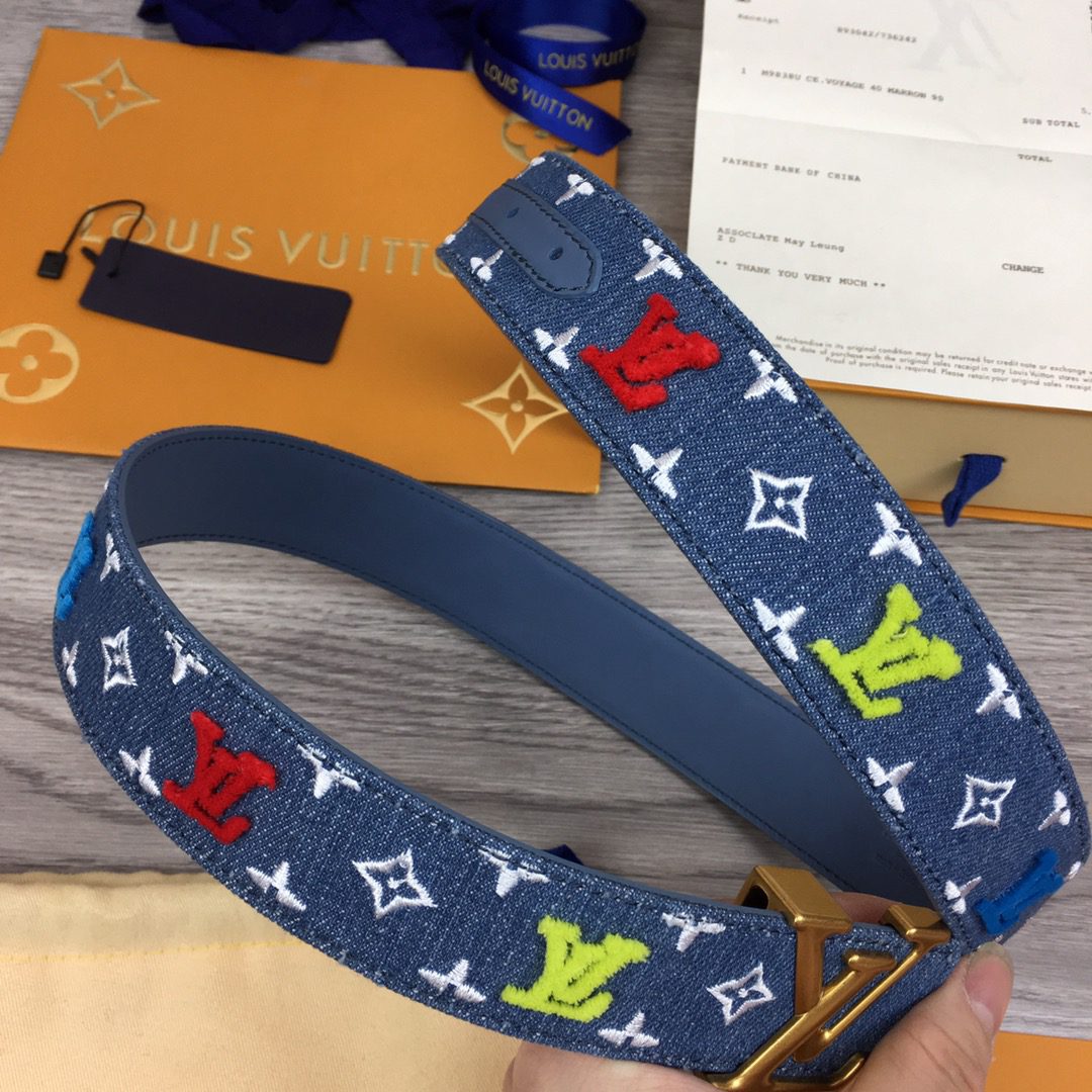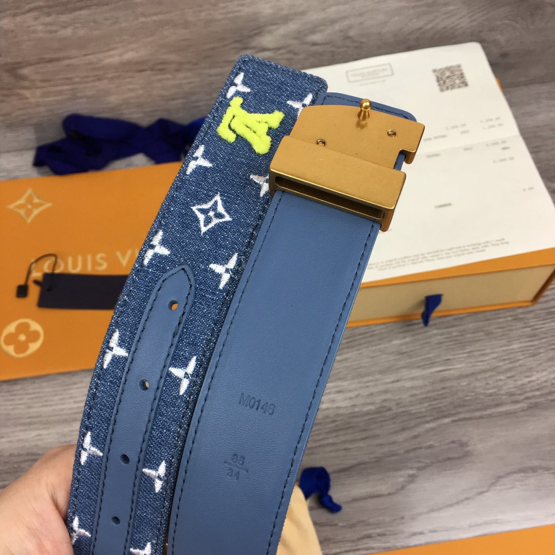 Louis Vuitton LV New Wave Belt Monogram Denim Gold Toned Hardware LV Women Belt