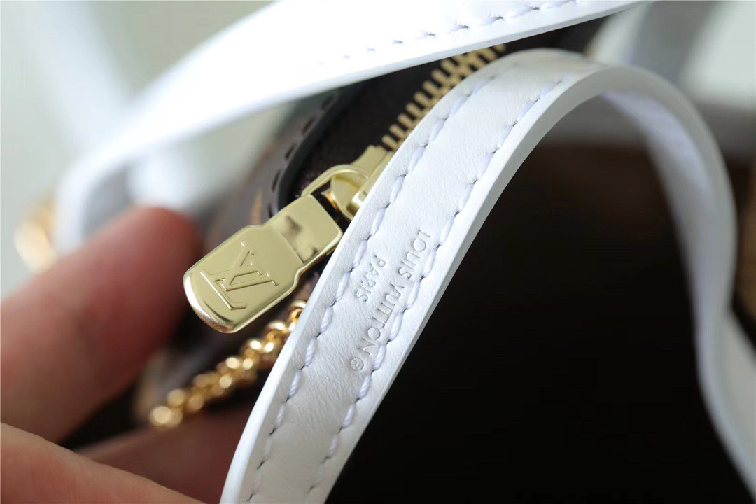 The Nano Bucket in L.V’s iconic Monogram canvas is part of the LV Match collection, which pays tribute to the world’s most famous tennis tournaments. This miniature bucket bag features two adjustable handles and an adjustable, removable shoulder strap in white, inspired by the lines on a tennis court. Inside the bag, a removable pouch on a gold-tone chain is perfect for valuables.