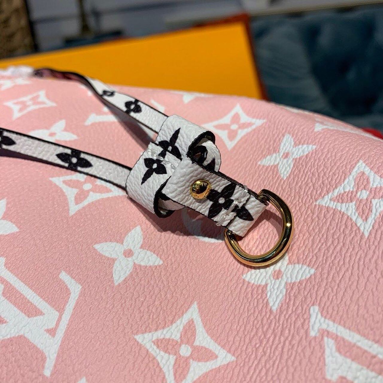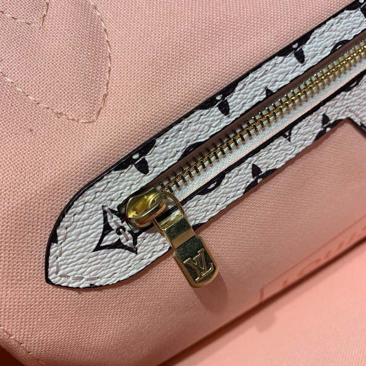 Playful, colorful, Neverfull: this season the iconic carryall wears a bold new spin on Monogram canvas. XL and Mini versions of the signature motif combine in sunny color palettes for a fun, summery look. Worn over the shoulder or carried on the arm, this MM model pairs perfectly with both beach and city looks.