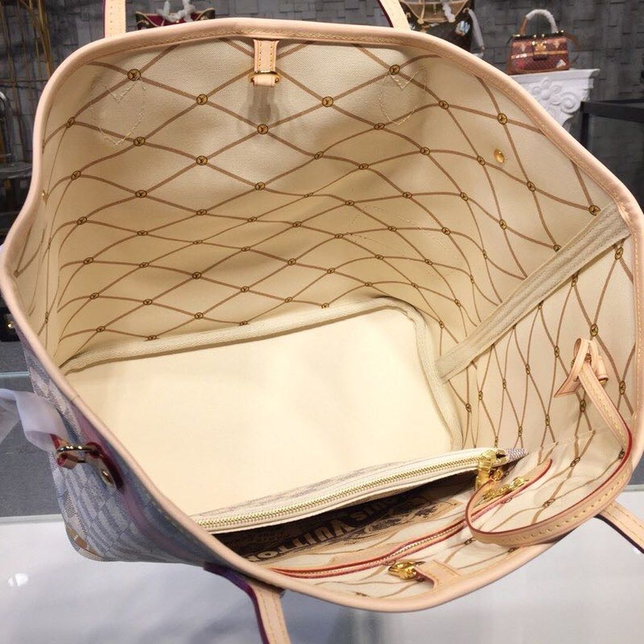 Louis Vuitton Neverfull MM Tote Bag Trompe L’oeil Print Damier Azur Canvas For Women, Women’s Handbags, Shoulder Bags 12.6in/32cm LV N41065
