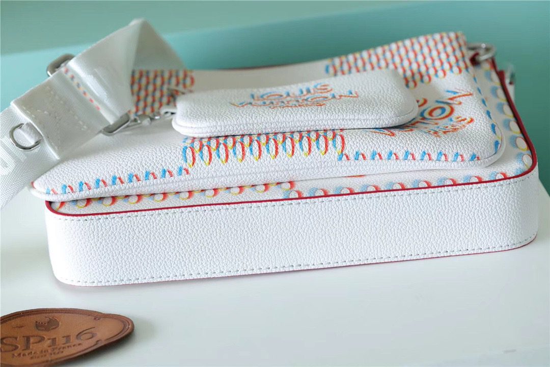 Three bags in one, the Trio Messenger is triply stylish with the Damier Spray look for 2022. A colorful XL version of L.V’s emblematic Damier pattern is printed on sumptuous smooth and grained for a 3D effect. With its removable front pocket and coin purse on the strap, it’s a street-smart bag for today’s Damier lovers.