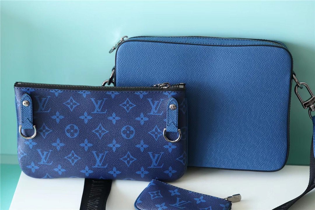 • Louis Vuitton Trio Messenger Monogram Canvas And Taiga Cobalt Blue For Men, Men’s Bags, Shoulder And Crossbody Bags 9.5in/25cm LV M30848