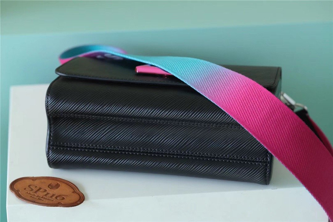 The emblematic Twist PM handbag takes on a playfully contemporary feel with its wide detachable strap in gradient colors, signed “L.V”. With the emblematic LV Twist lock in a color matching that of the strap, this Twist is nothing if not eye-catching. A removable top handle enables hand carry.