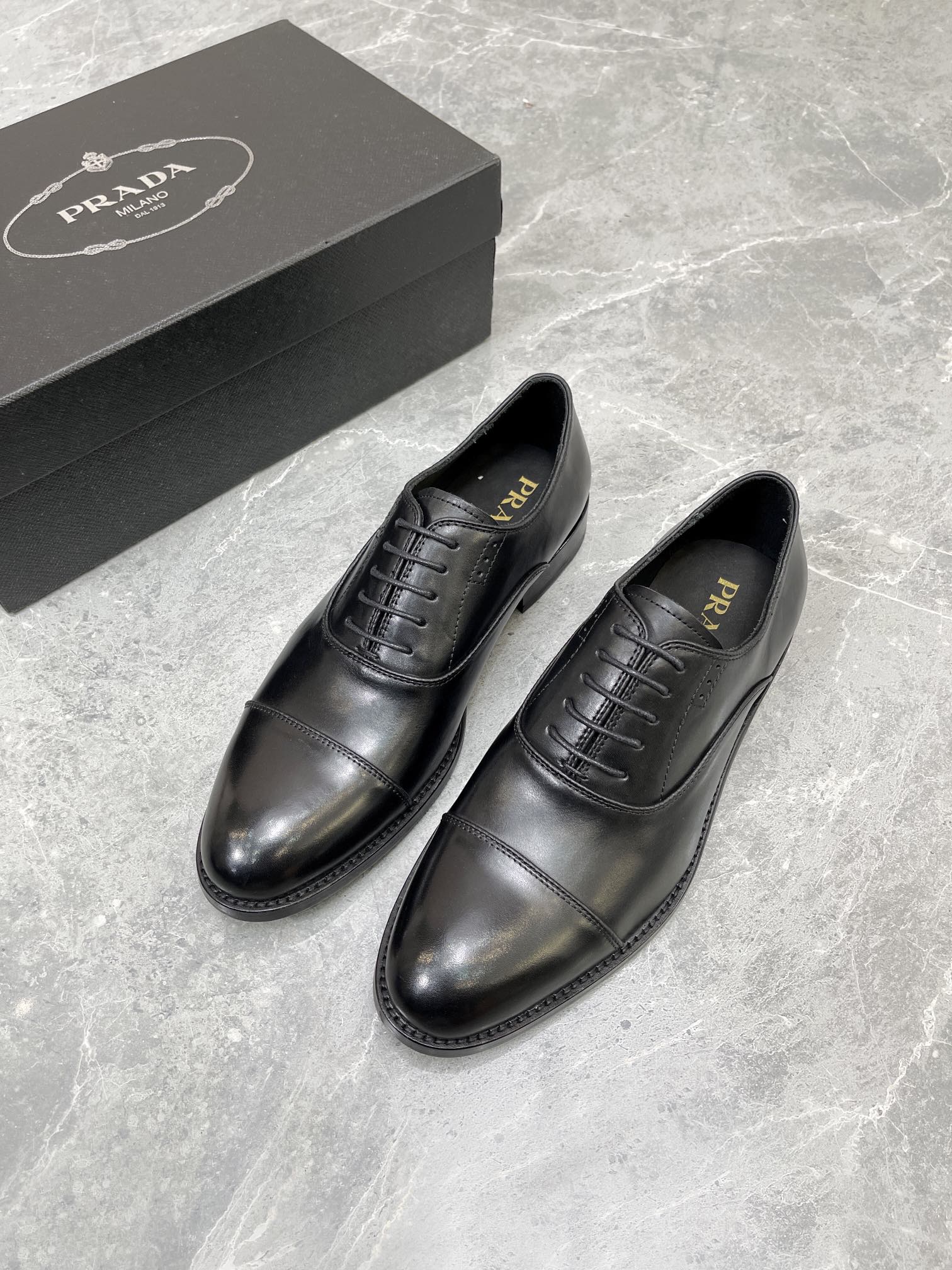 • Prada Brushed Oxford Shoes Black For Men 1in/25mm Prada