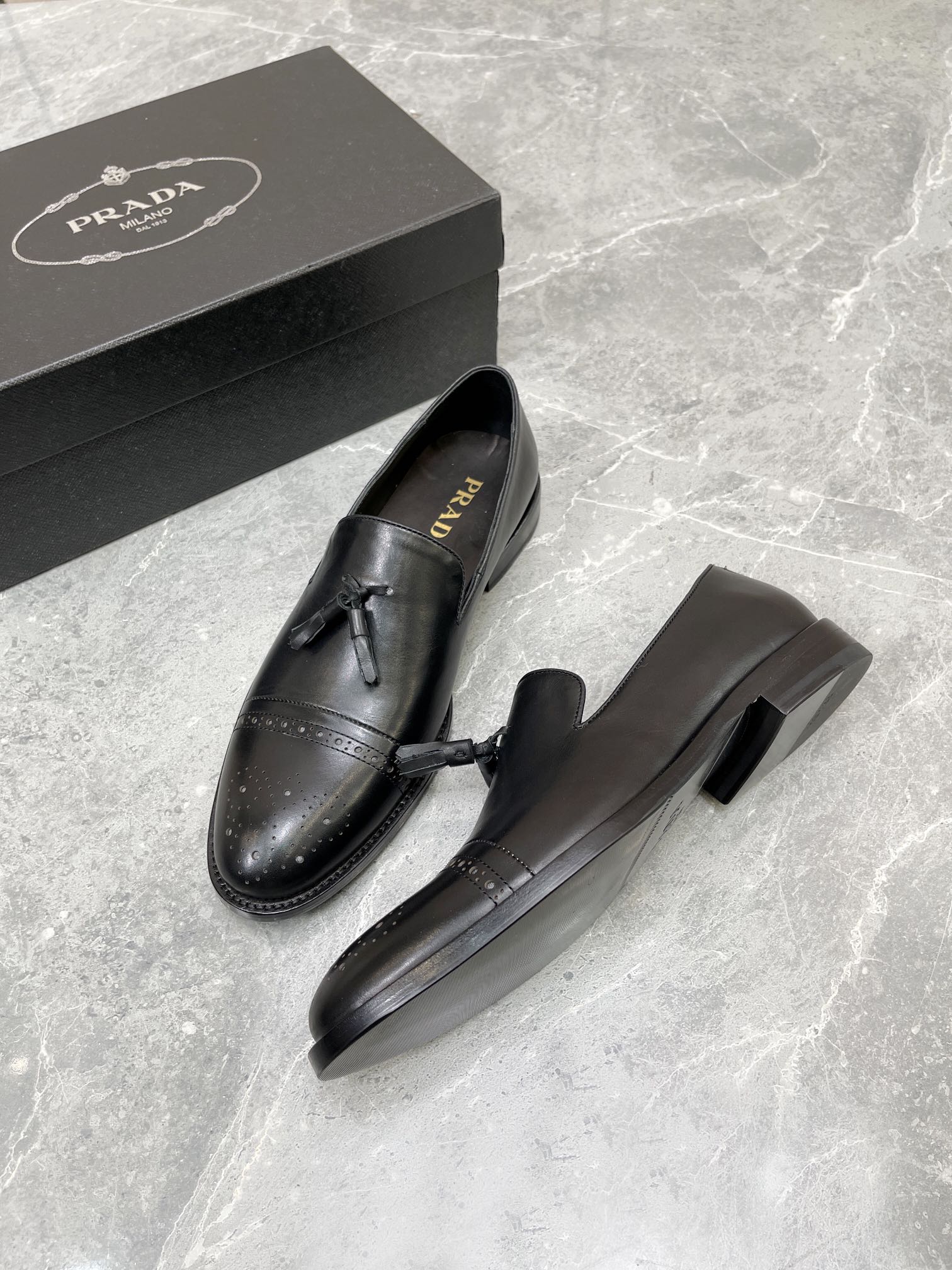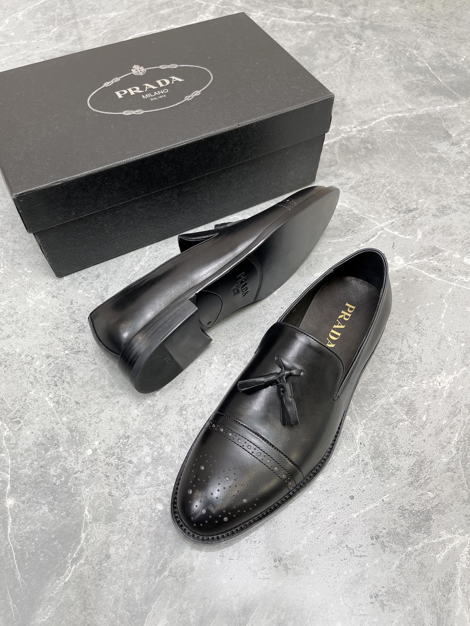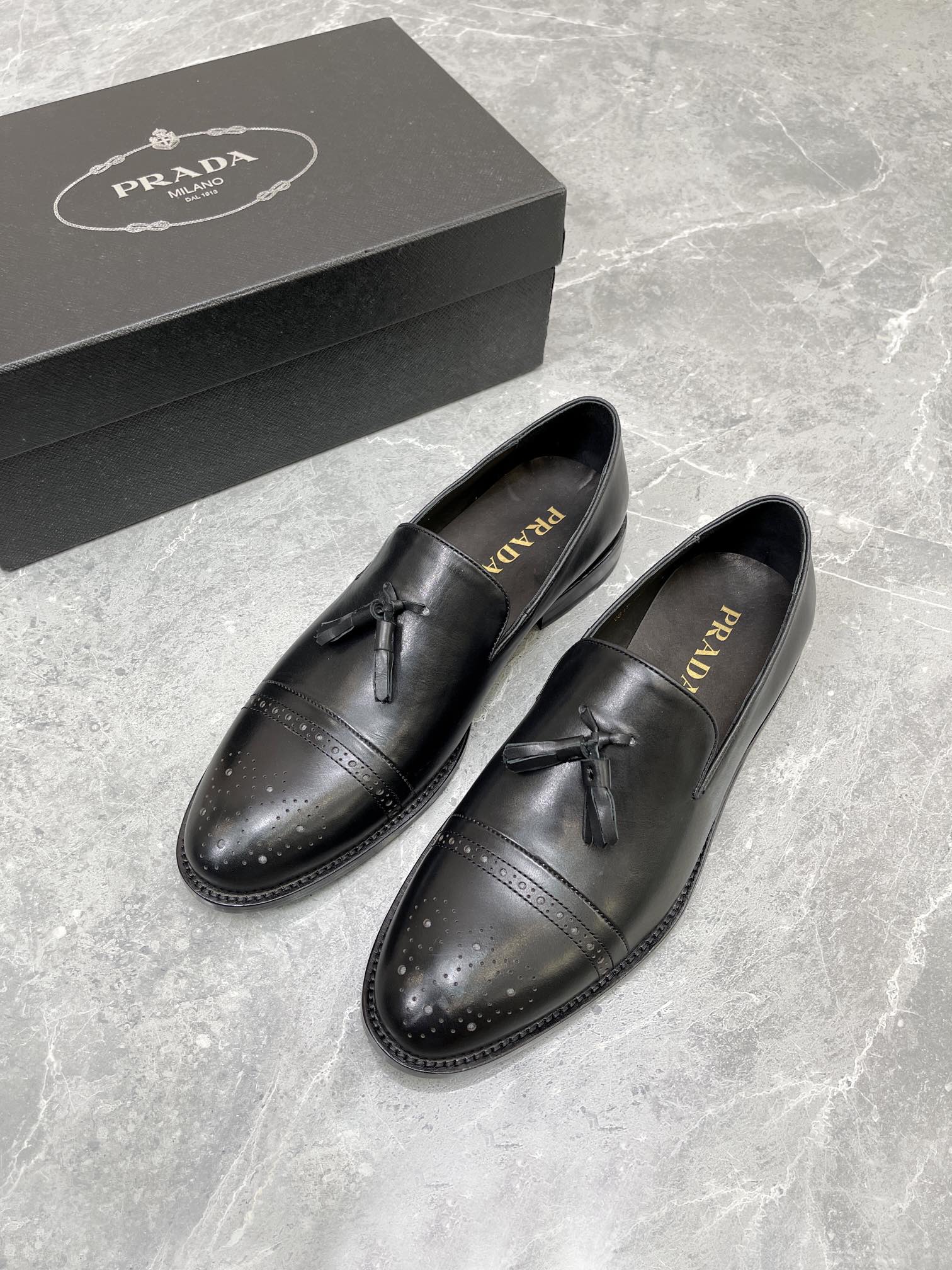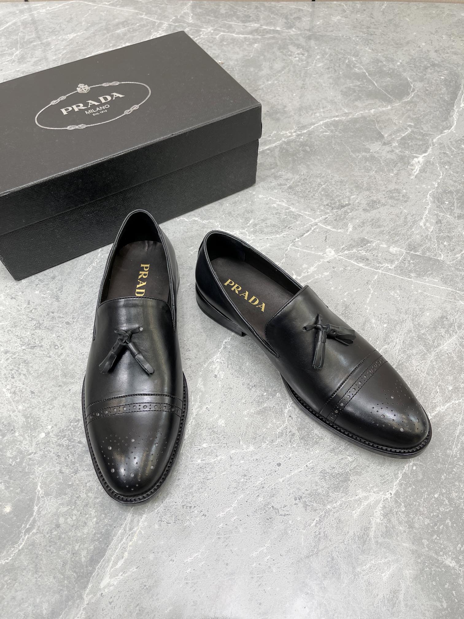 Prada Brushed Oxford Shoes Black For Men 1in/25mm Prada