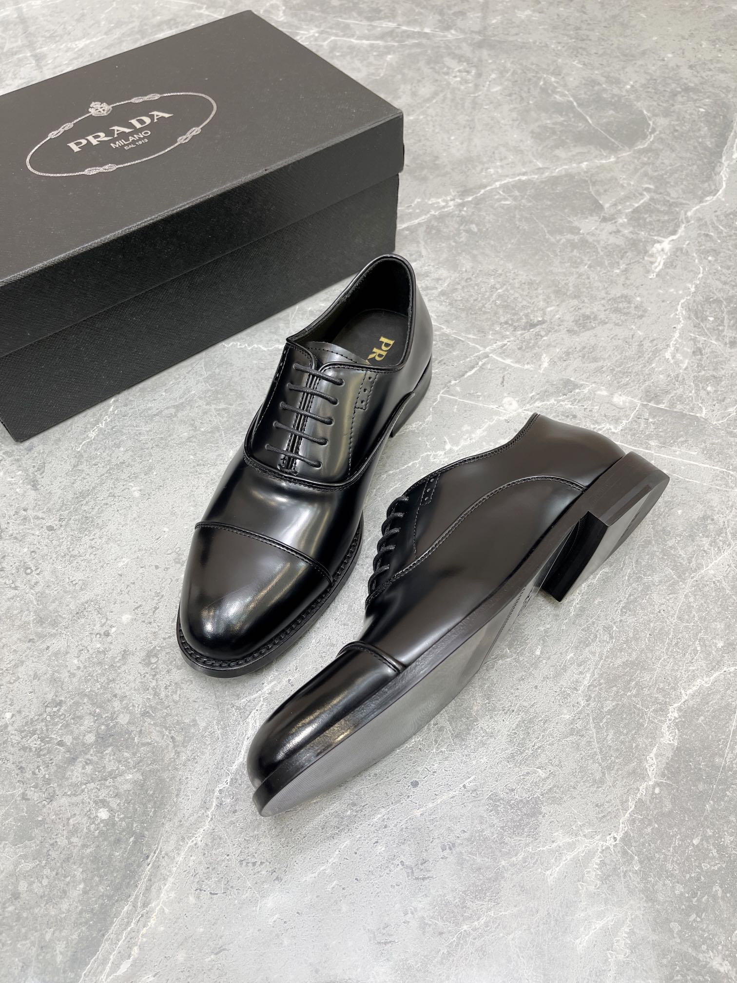 Prada Brushed Oxford Shoes Shiny Black For Men 1in/25mm Prada