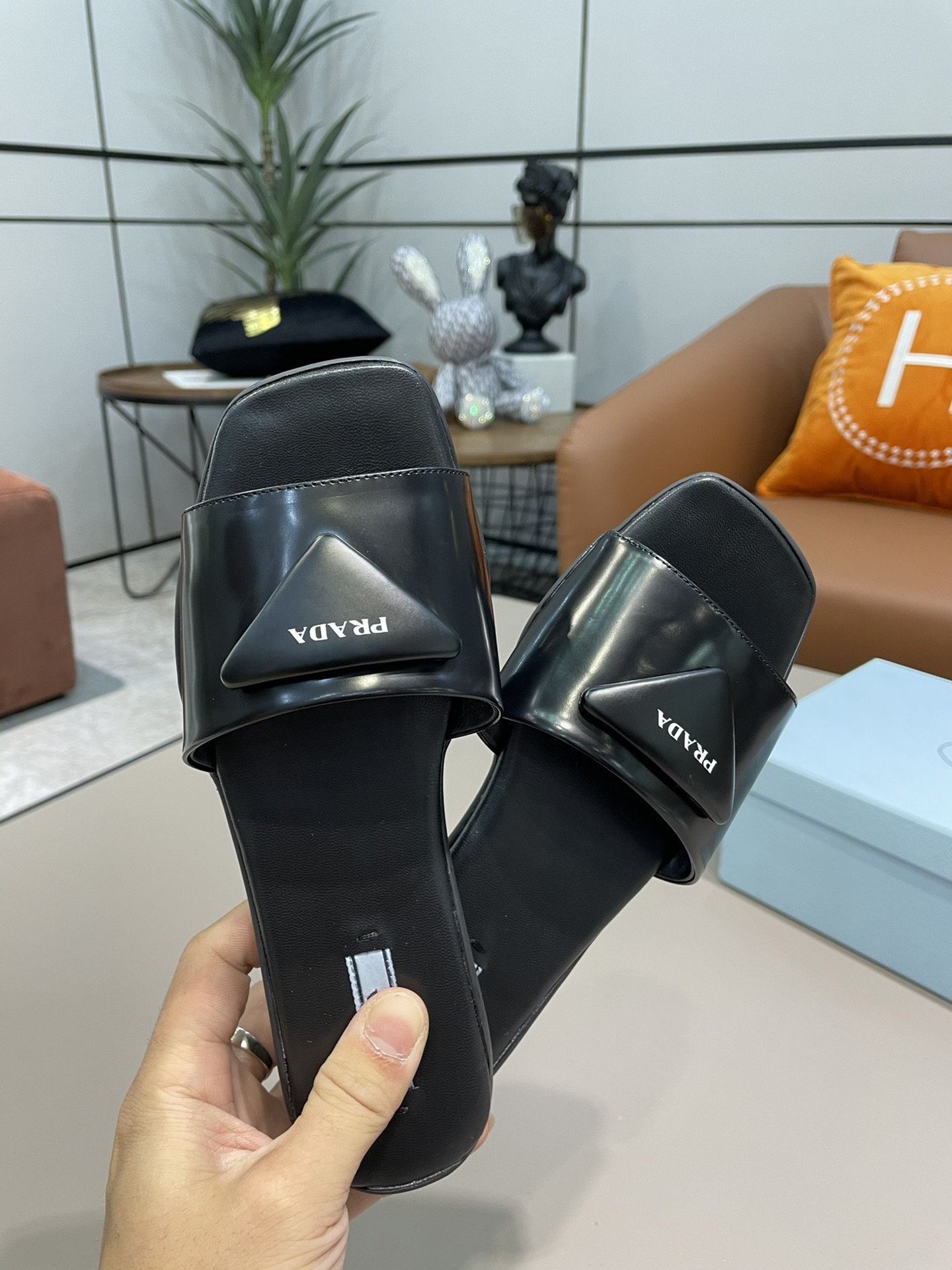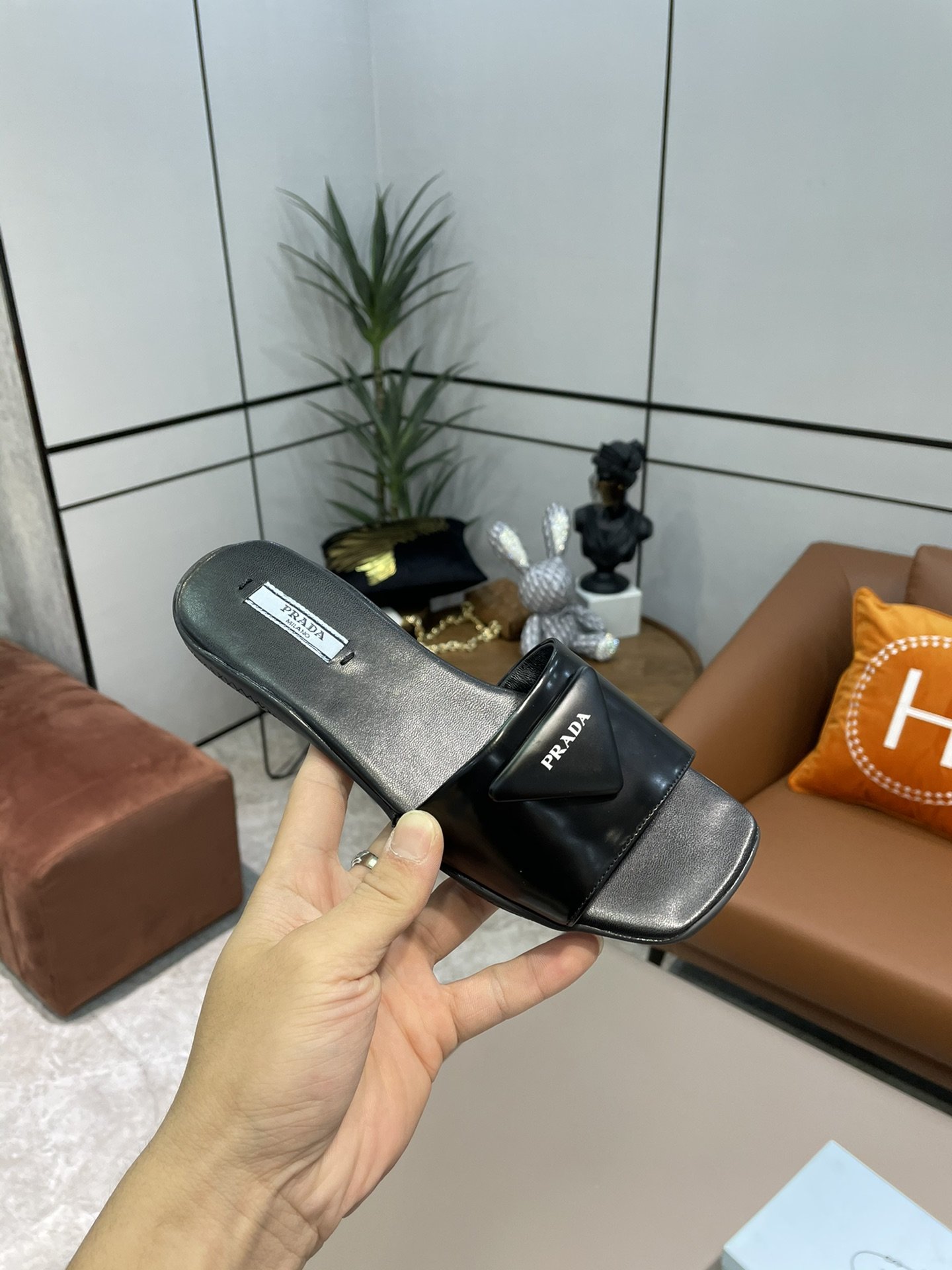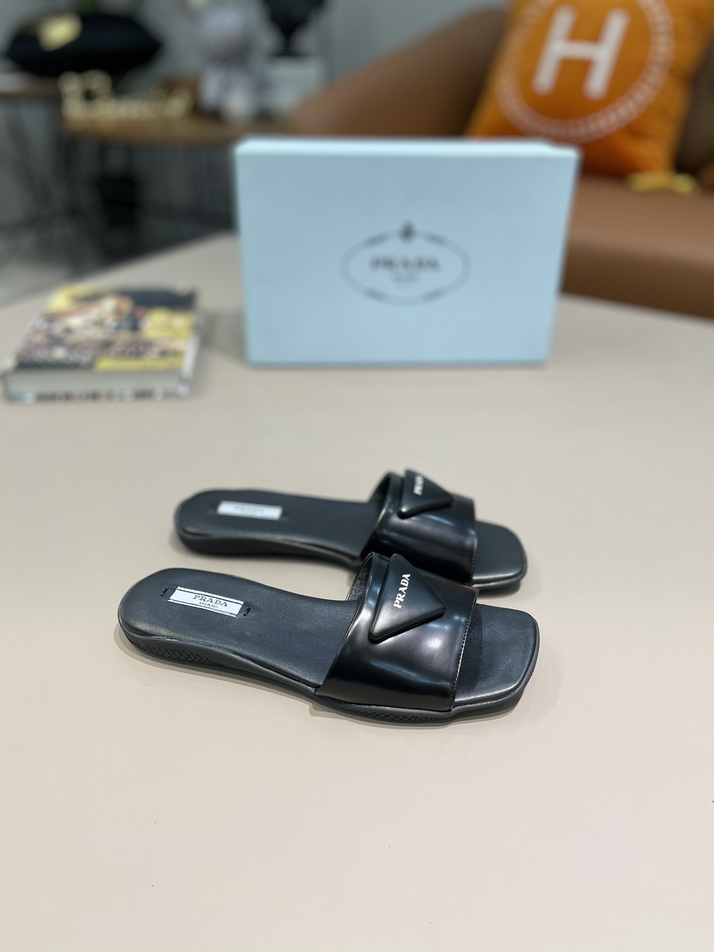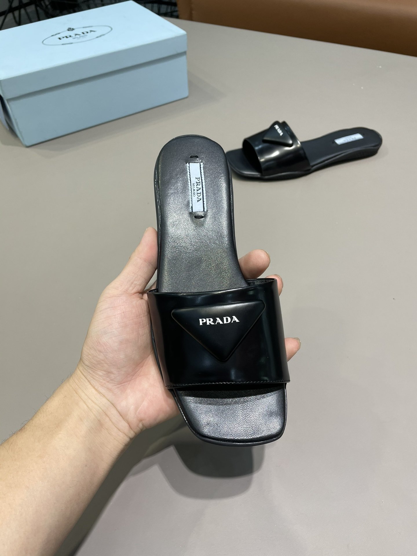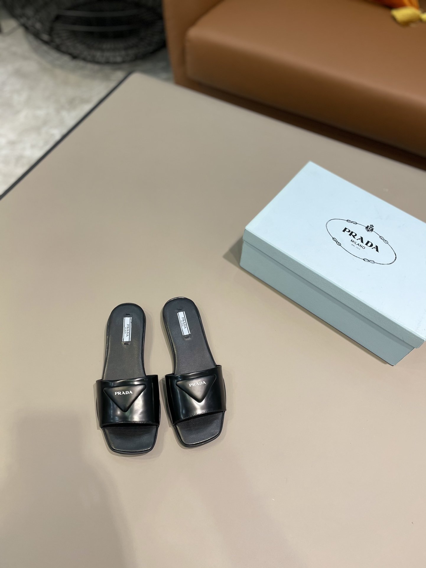 Prada Brushed Slides Black For Women Prada