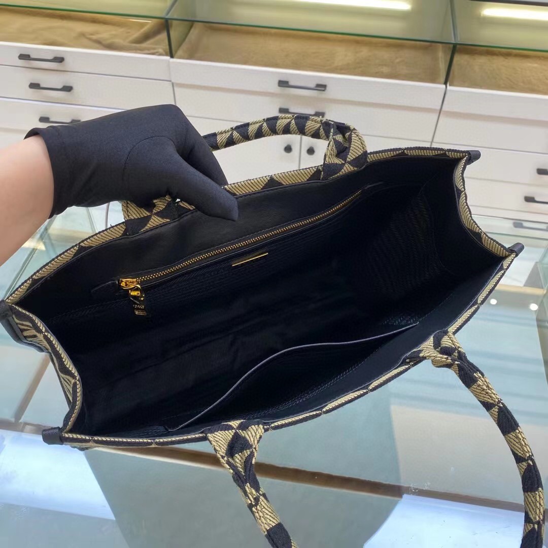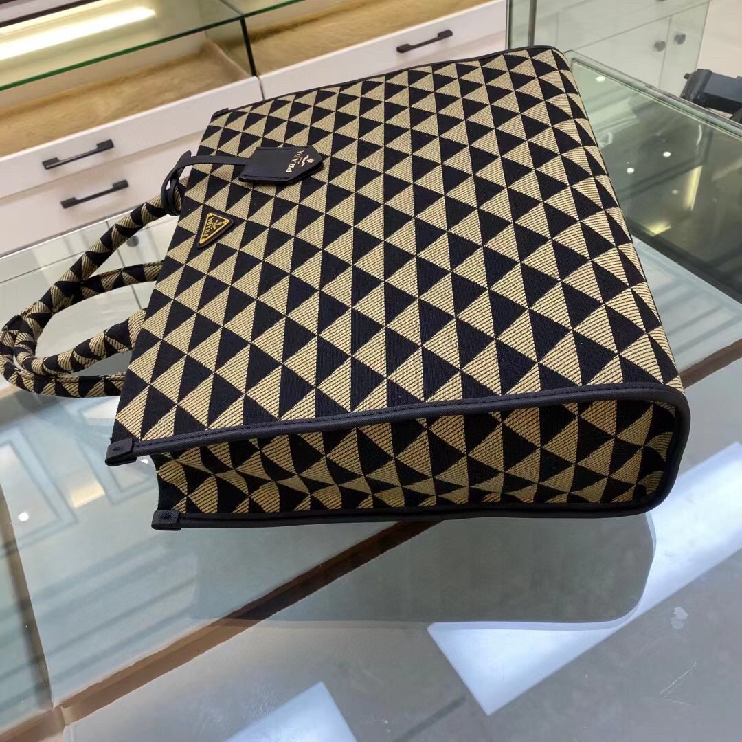 Prada Large Symbole Jacquard Fabric Handbag Black/Beige For Women, Women’s Bags 15.3in/39cm 1BA356_2FKL_F0Y30_V_OOO