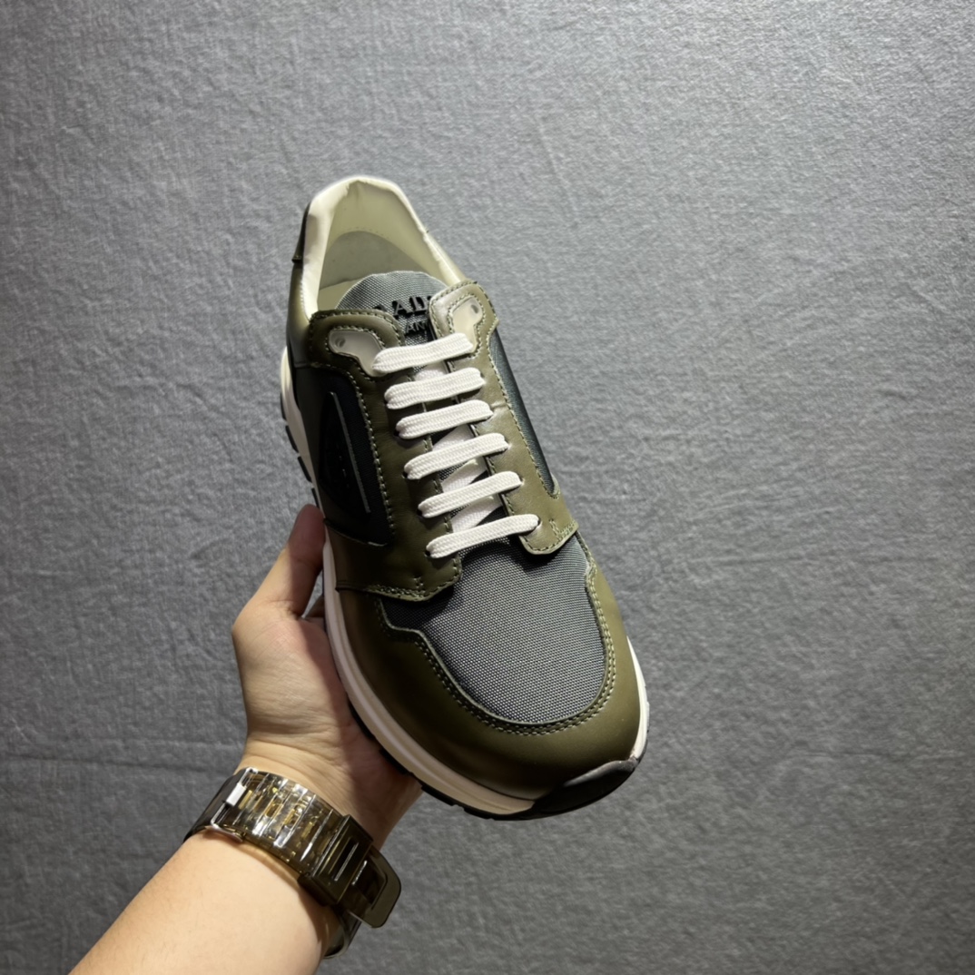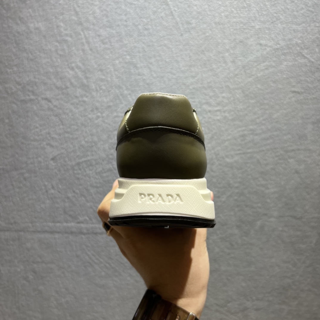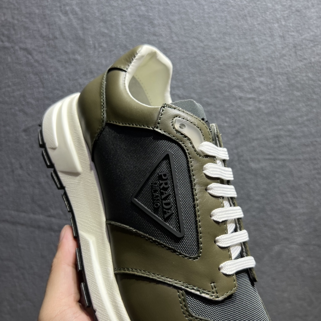 Injected rubber Prada triangle logo on the upper