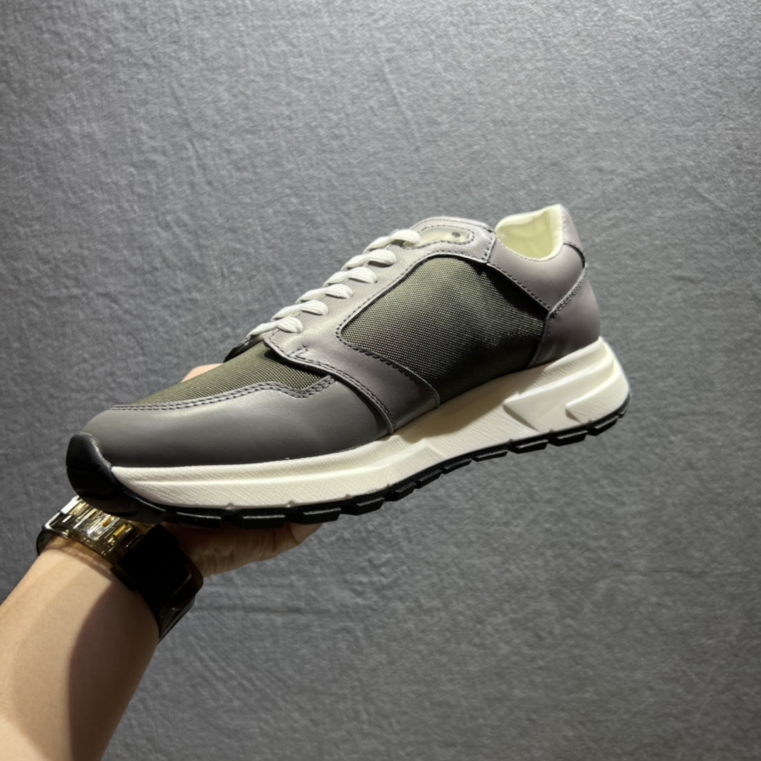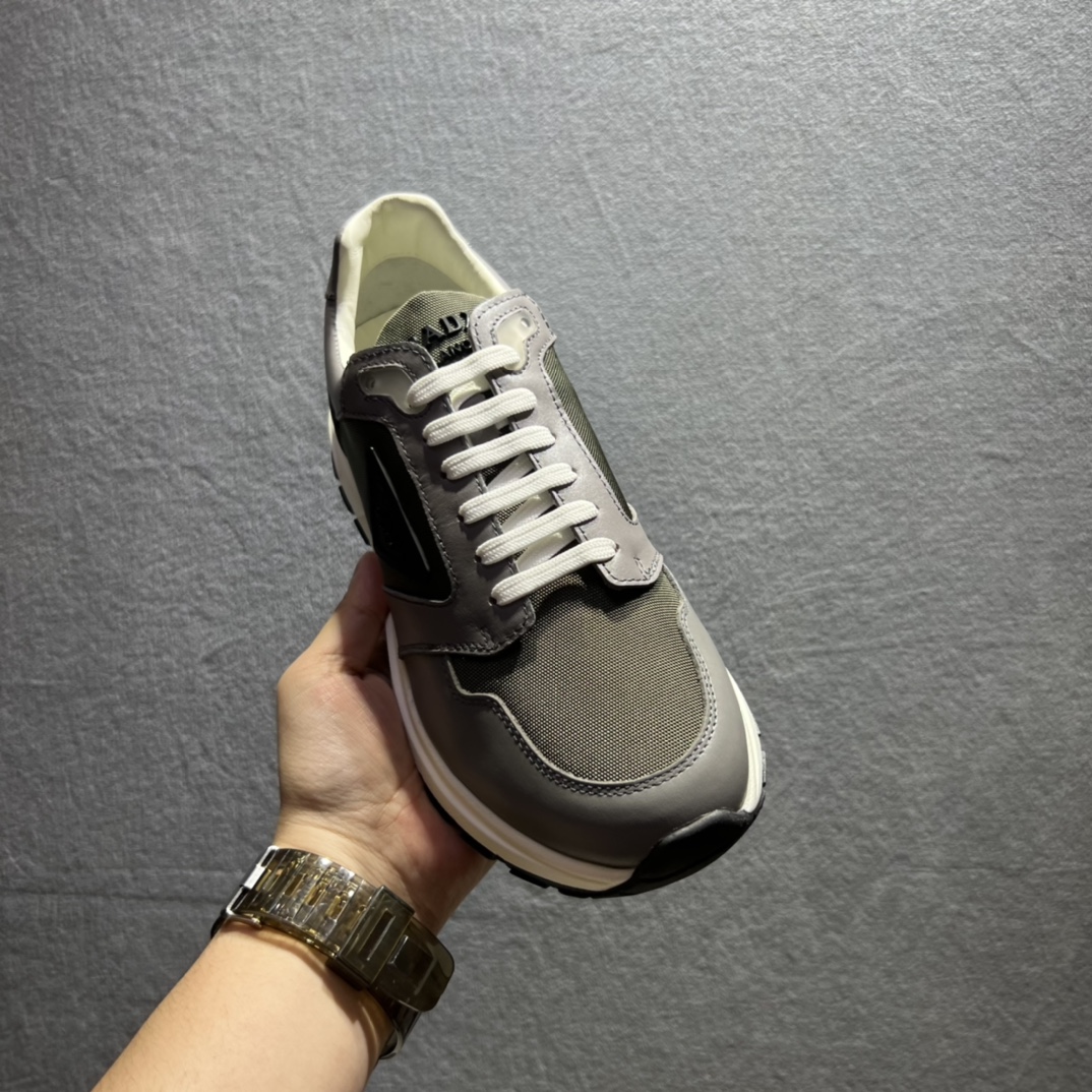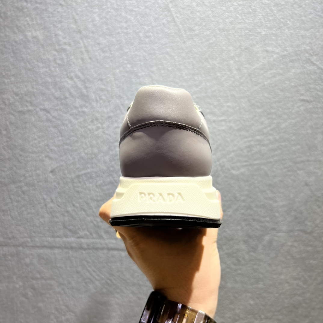 Injected rubber Prada triangle logo on the upper