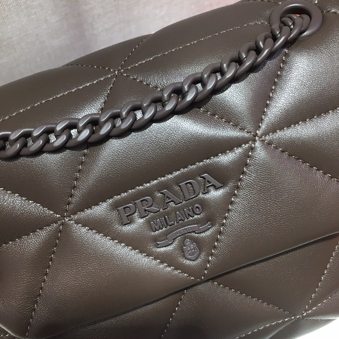 Feminine in design, the Prada Spectrum bag is made of nappa with a stitched motif. It has a tonal chain shoulder strap.