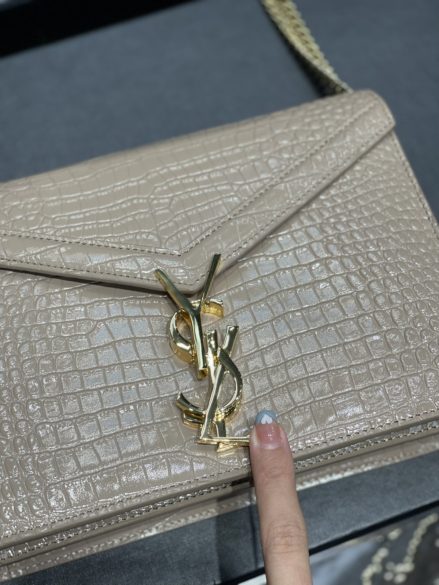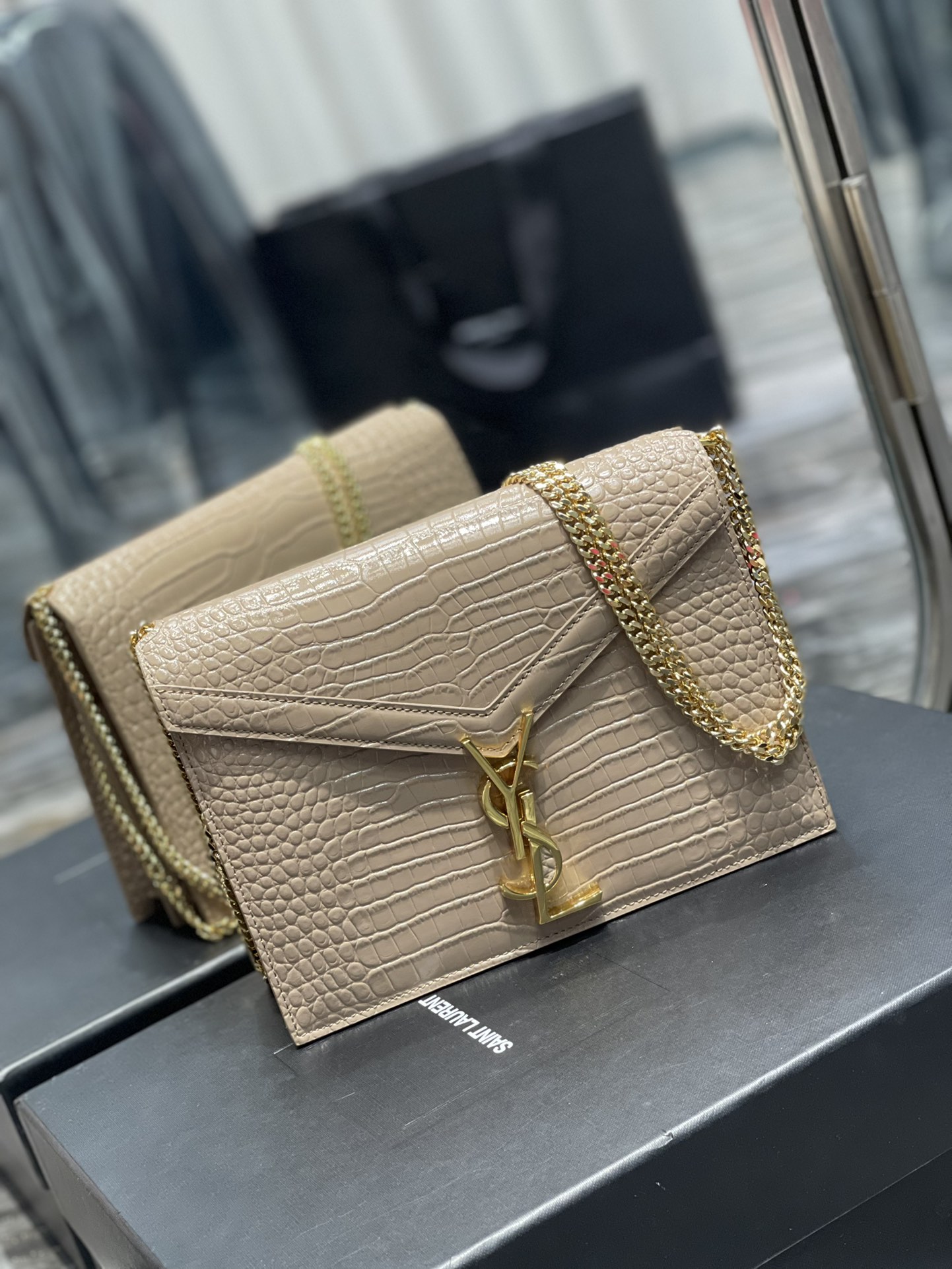 • Yves Saint Laurent Cassandra Medium Chain Bag Dark Beige In Grain De Poudre Embossed For Women 8.6in/22cm YSL 532750DND0J2721