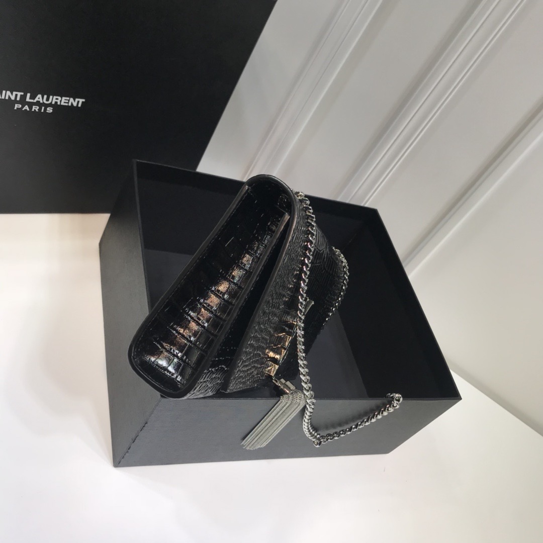 Yves Saint Laurent Kate Medium Chain Bag With Tassel In Embossed Crocodile Black For Women 9.4in/24cm YSL 354119DND0N1000
