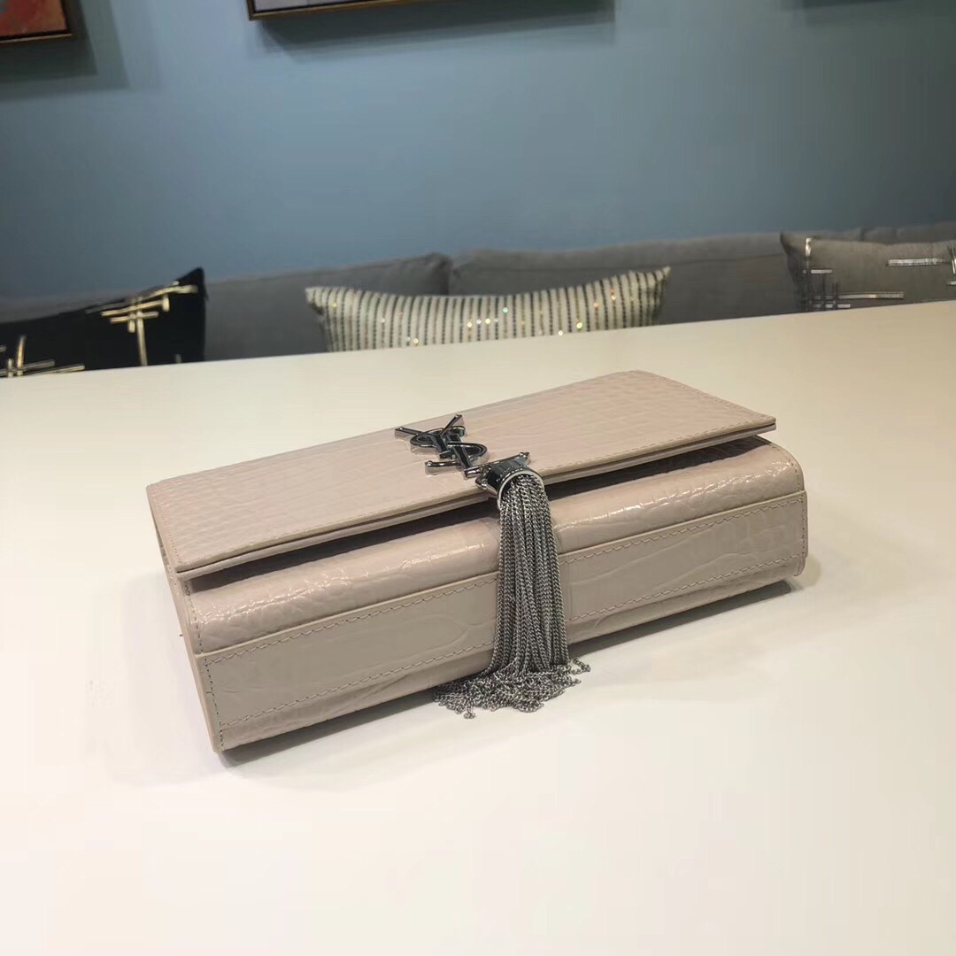Yves Saint Laurent Kate Small Chain Bag With Tassel In Embossed Beige For Women 7.8in/20cm YSL
